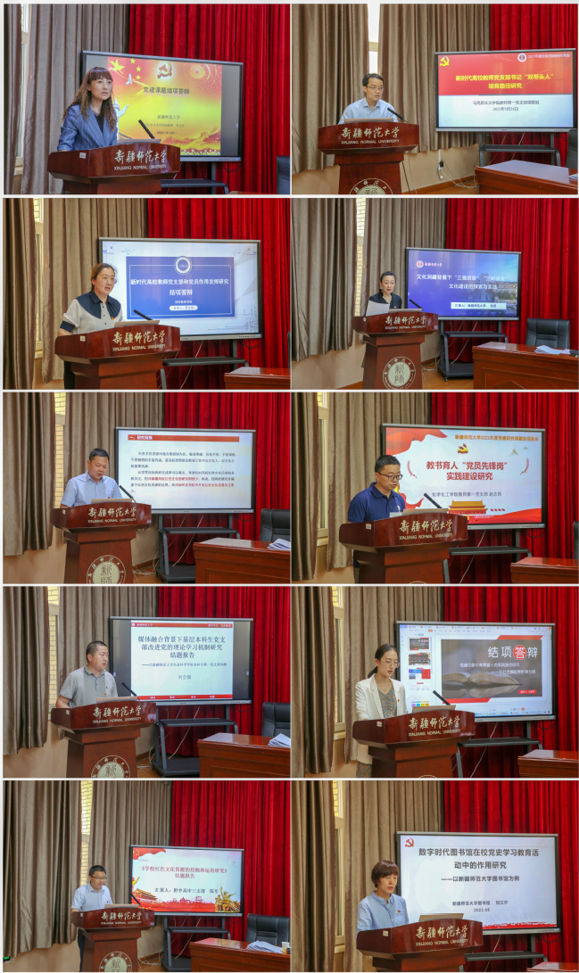 会上,13名党建课题主持人分别以线上线下相结合的方式,通过PPT进行汇报陈述,评审专家对课题研究的整体性和结构性、理论性和实践性、研究现状和实地调研成果、学术的规范性与创新性等方面进行质询并提出了意见建议。