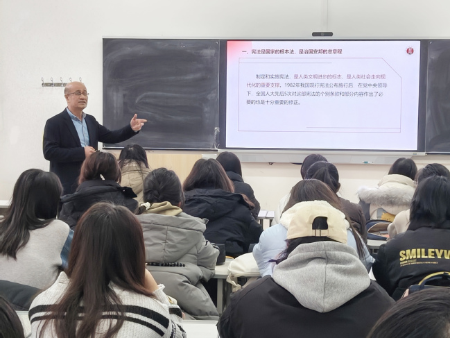 12月9日,校党委副书记、校长吾满江·艾力深入“三进两联一交友”联系班级——我校教育科学学院小学教育2024-3班,在温泉校区2号教学楼110教室讲授题为《增强宪法意识,弘扬宪法精神》的专题课程。