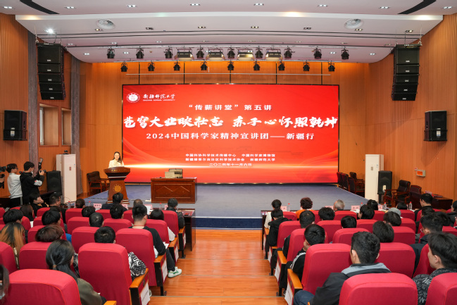 本次“传薪讲堂”由中国科协科学技术传播中心、中国科学家博物、新疆维吾尔自治区科学技术协会、新疆师范大学共同主办。我校党委宣传部、科技处、校团委部门负责人,物理与电子工程学院、计算机科学技术学院、数学科学学院、地理科学与旅游学院、外国语学院、生命科学学院及其他学院师生代表200余人参加活动。