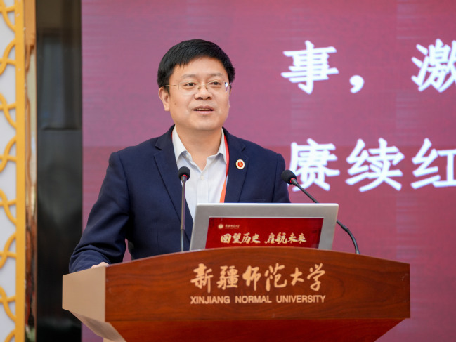 校党委书记葛国在开幕致辞中表示,大学校史是大学传统的积淀、大学精神的承载、大学文化的映照、大学成就的展现,是学校特有的历史文化遗产。编撰校史是贯彻落实习近平总书记关于历史重要论述的具体实践,是推动教育薪火相传、服务教育强国建设的重要举措,是赓续新疆师范大学优秀文化传统、引领自治区师范教育创新发展的重大任务,是学校重大战略工程、文化工程,具有深远历史意义和重大现实意义。近年来,新疆师范大学在原有校史资料的基础上,专门组织相关人员发掘和整理了新疆师范教育和学校校史文化资源,在追根溯源的历史联结和论证上做了很多工作。希望与会的老领导、校史专家、校友代表积极提出意见建议,深入研讨和厘清学校发展的历史脉络,为书写有内容、有品质、有温度、有灵魂的新疆师范大学校史贡献智慧。
