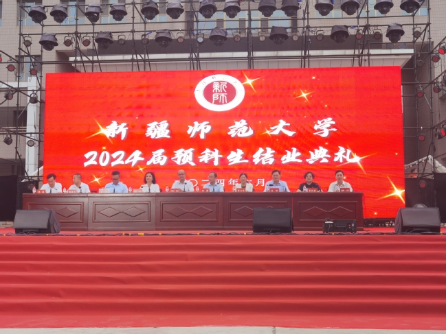 当日20时30分,结业典礼在雄壮的国歌声中正式拉开帷幕。典礼活动上,校领导宣读了新疆师范大学2024届预科生结业决定,并亲自为结业生代表颁发了结业证书。受表彰的优秀教师代表、优秀预科结业生代表先后上台领奖。现场气氛庄重热烈。
