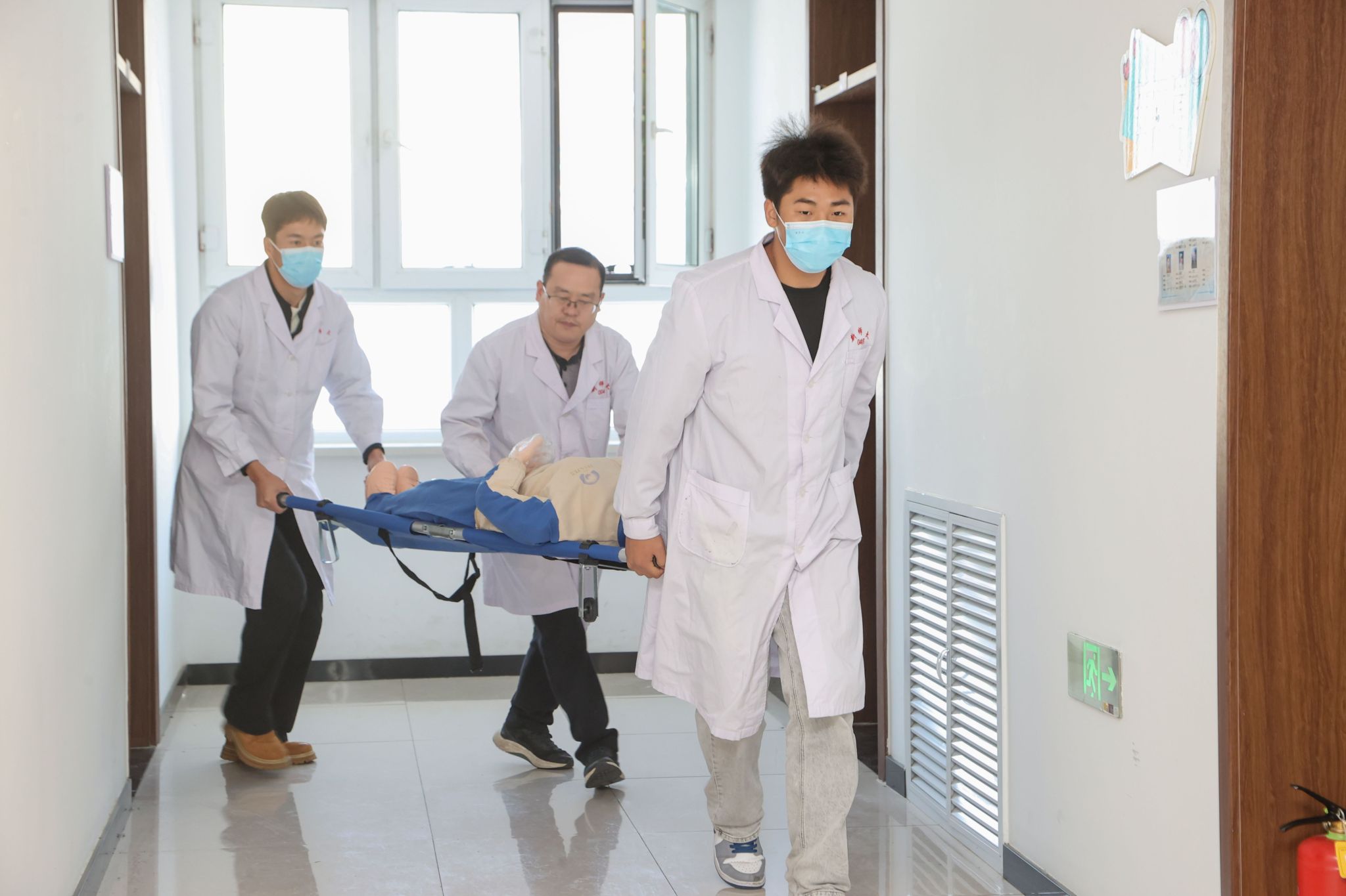 当天16时,随着急促的消防警报声响起,演练正式拉开帷幕。预设的“火情”发生在温泉校区9号学生公寓楼201室内,浓烟迅速蔓延。楼内值班人员第一时间发现“火情”并立即启动应急响应,拨打校园报警电话。各楼层疏导教师及学生志愿者迅速就位,按照预定疏散路线,引导同学们用湿毛巾捂住口鼻,弯腰低姿,快速有序地从各安全出口撤离至指定的应急避难集结区。整个疏散过程紧张而不慌乱,仅用时5分钟,所有参演师生便全部安全撤离至指定地点,达到了预期效果。