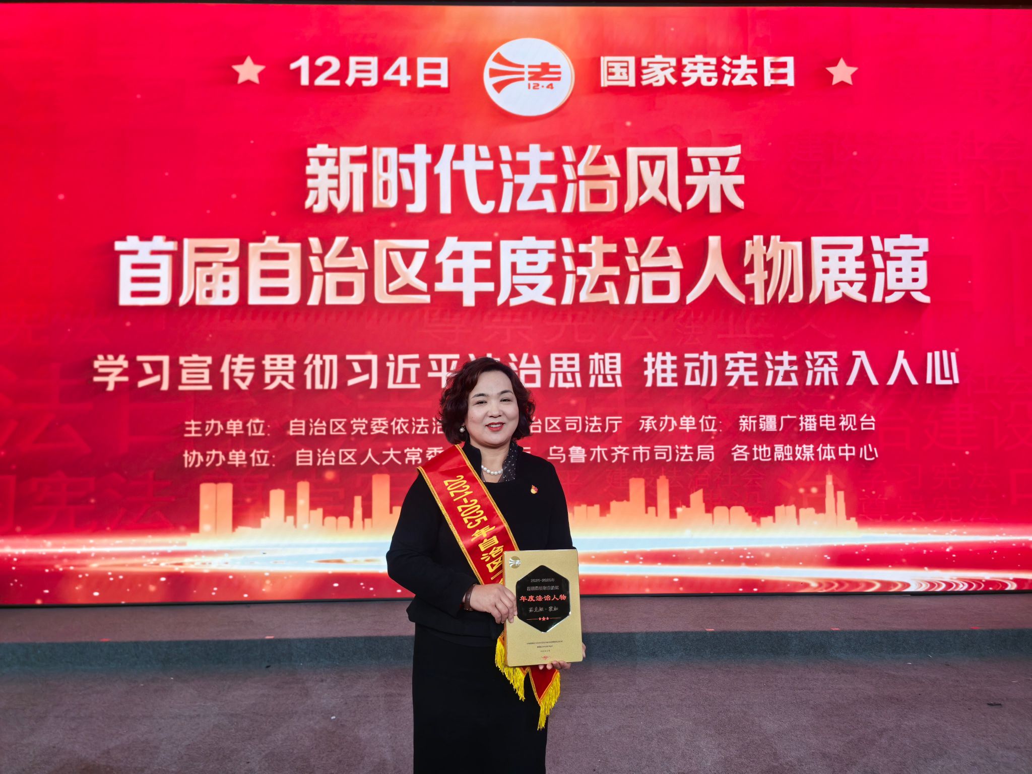 “年度法治人物”是自治区法治建设领域的崇高荣誉,旨在表彰为推进全面依法治区、弘扬法治精神、维护公平正义作出突出贡献的先进典型。茹克娅·霍加教授长期致力于法治实践、立法咨询和法学教育事业,积极参与基层普法、妇女儿童权益保障等公益法律服务,多次承担自治区立法调研与起草工作,并致力于培养高素质法治人才,为新疆法治建设作出持续而扎实的贡献。