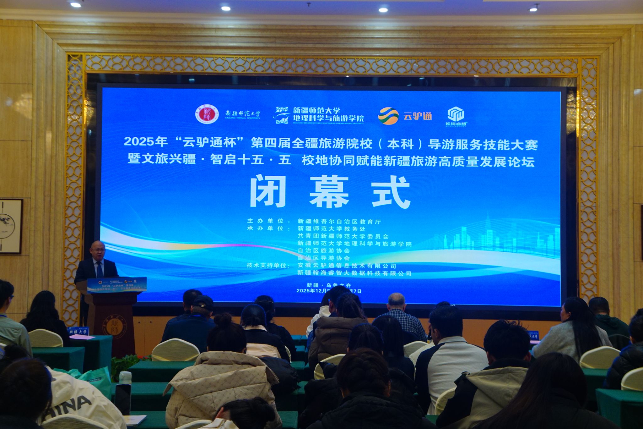 12月5日至6日,2025年“云驴通杯”第四届全疆旅游院校(本科)导游服务技能大赛在我校温泉校区成功举办。本次大赛由自治区教育厅主办,我校教务处、校团委及地理科学与旅游学院联合承办,吸引了来自全疆多所本科院校的84名选手同台竞技。自治区文化和旅游厅公共服务处干部麦冬梅,校团委书记陆娇、教务处副处长冯章献、马晓东和地理科学与旅游学院领导班子及师生代表参加相关活动。