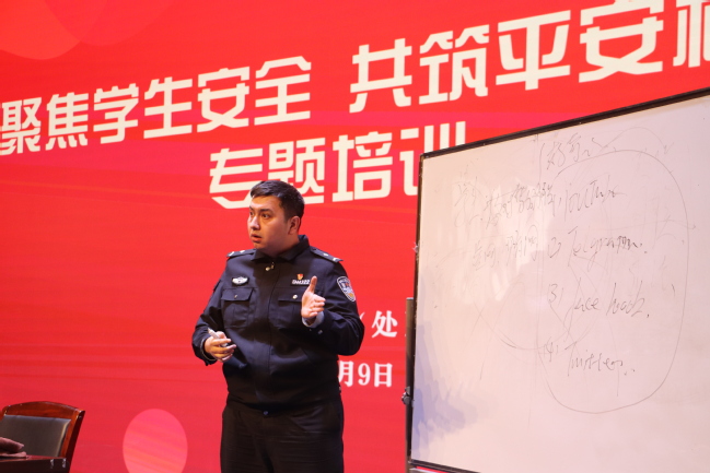 为切实加强学生安全管理,推进校园安全责任落实,确保校园安全稳定和谐,4月9日,学生工作部(处)联合保卫处、派出所组织开展“聚焦学生安全 共筑平安校园”专题培训会。校党委副书记刘俊出席会议并发表讲话。培训会由学生工作部(处)处长张进主持,各学院党委副书记、全体辅导员、学生工作部(处)及学生社区中心工作人员及楼管员参加培训。