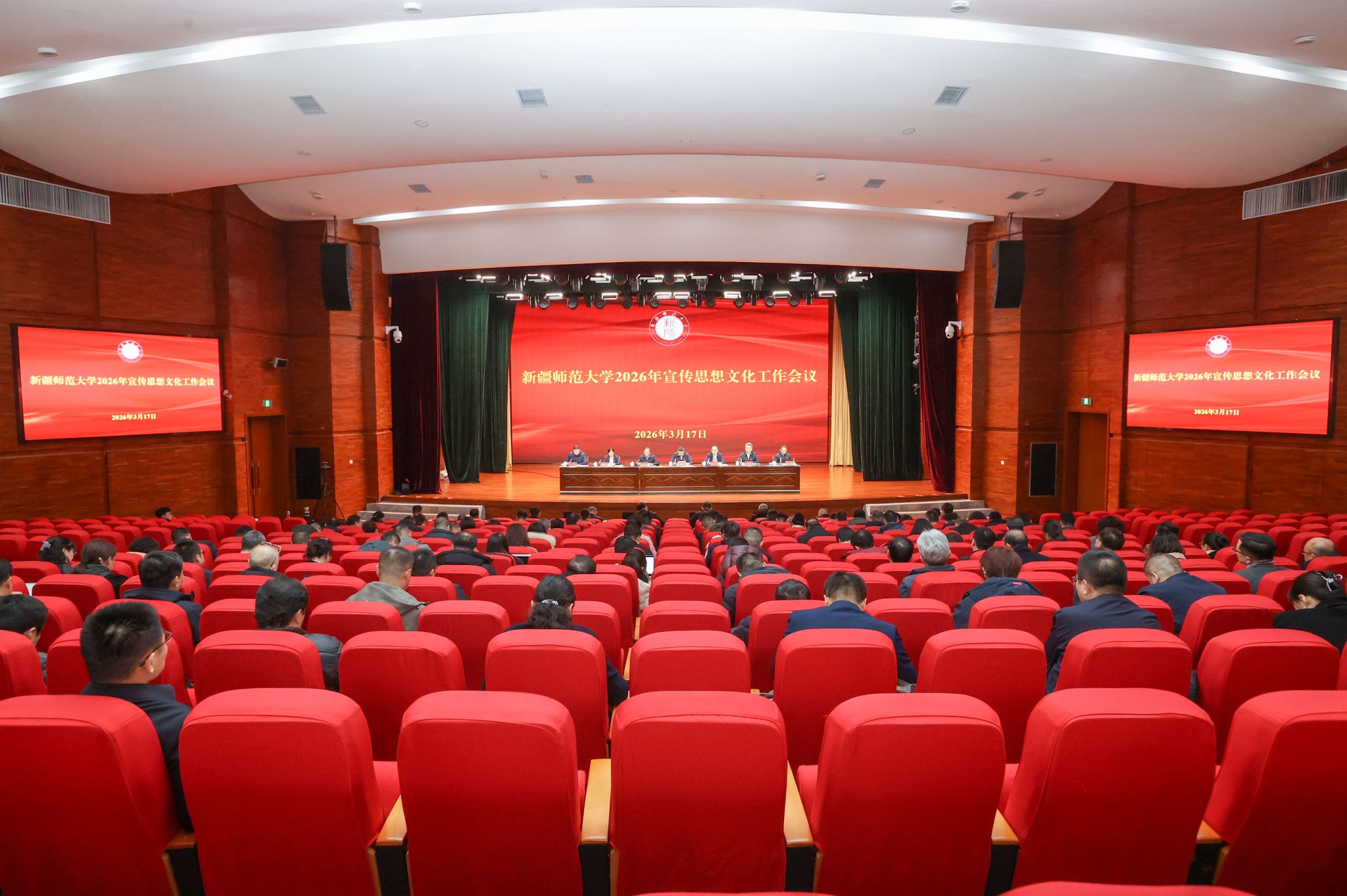 3月17日,新疆师范大学2026年宣传思想文化工作会议在温泉校区昆仑讲堂召开。会议深入学习贯彻习近平文化思想和习近平总书记关于宣传思想文化工作的重要论述,全面落实自治区宣传部长会议精神,总结2025年工作成效,部署2026年重点任务,为学校“十五五”规划开局起步凝聚思想共识、汇聚奋进力量。校党委书记蒋海军出席会议并讲话,校党委副书记、校长艾尼娃尔・艾克木主持会议。