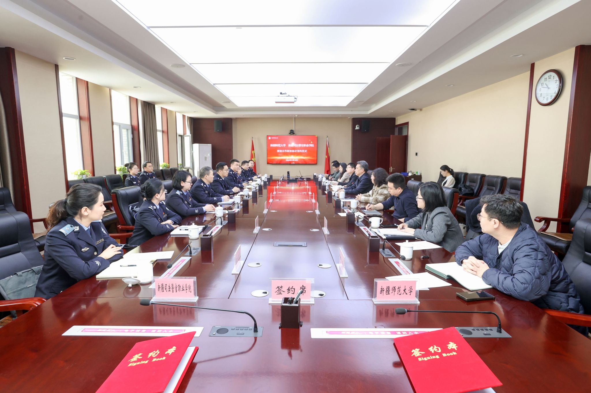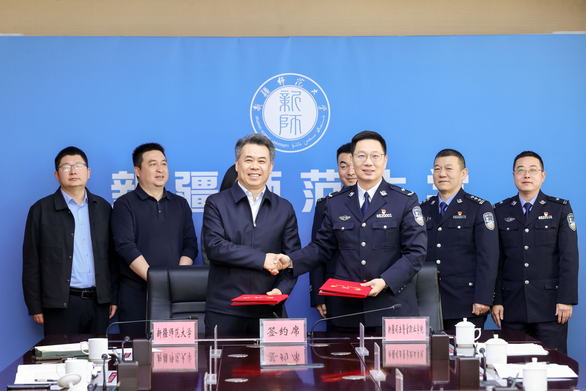 3月18日上午,我校与新疆司法警官职业学院正式签署援建合作框架协议,标志着两校携手推进职业教育高质量发展、服务新疆法治建设与人才培养的深度协作全面启动。新疆司法警官职业学院党委副书记、院长张峥,我校党委常委、副校长王世杰和相关职能部门负责人出席签约仪式。