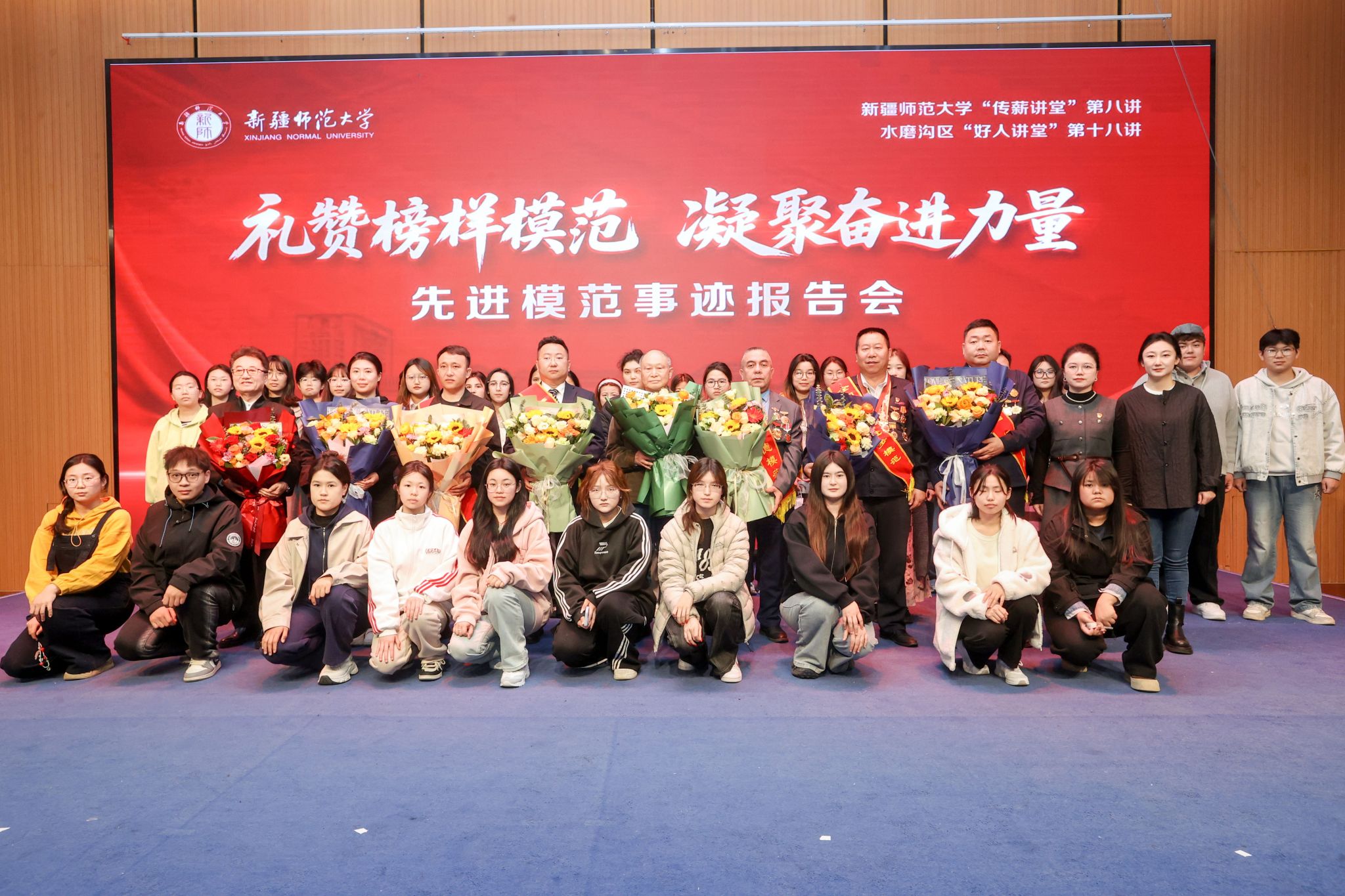 为深入传承榜样精神,凝聚师生奋进力量,3月24日,新疆师范大学“传薪讲堂”第八讲——“礼赞榜样模范 凝聚奋进力量”先进模范事迹报告会暨水磨沟区“好人讲堂”第十八讲在温泉校区后勤楼202报告厅举行。