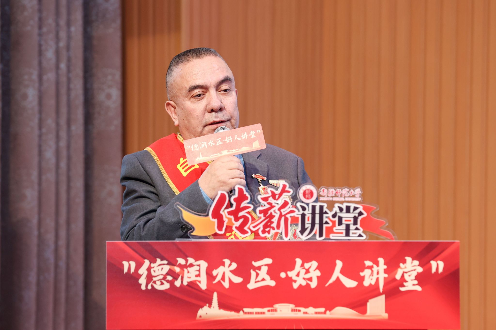 宣讲现场,全国道德模范、全国民族团结进步模范个人刘乾坤讲述了自己半个多世纪以来坚守初心、用6000多张汇款单垒起大爱长城的感人事迹;全国民族团结进步模范个人、全国劳动模范谷祥峰分享了在平凡的公交岗位上,用爱心与坚守书写公交人质朴情怀的动人故事;自治区道德模范海来提·哈德尔讲述了自己长期坚持无偿献血,以热血为纽带架起生命桥梁的坚守与担当;中国好人、自治区道德模范王永强分享了自己投身志愿服务,从帮扶邻里解决生活难题,到关爱孤寡老人的暖心历程;乌鲁木齐市助人为乐模范苗启东讲述了多年来扎根基层、帮扶困难群体,为贫困学生捐赠学习用品、为残障人士提供生活照料的善举;乌鲁木齐市见义勇为模范田小龙分享了危急时刻挺身而出、守护他人安全的英雄壮举;水磨沟区宣讲员郭瑞则讲述了70年来新疆大地发生的沧桑巨变、展现的蓬勃生机,以及这片热土上各族人民守望相助、砥砺前行的初心与力量,重点展现了水磨沟区在时代发展中的奋进姿态与各族群众同心筑梦的精神风貌。宣讲期间,乌鲁木齐市老兵公益志愿服务联合会副会长管军强演唱了歌曲《你就是好人》,新疆师范大学大学生艺术团表演了诗朗诵《青春中国》,用艺术形式传递榜样力量、抒发爱国情怀。