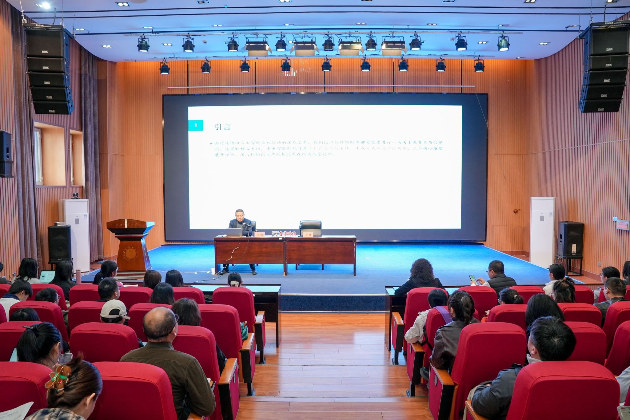 3月31日上午,我校“昆仑名师讲坛”第一百八十九讲在温泉校区举行。华东师范大学终身教授、“紫江学者”特聘教授、教育高等研究院院长丁钢应邀以《智能时代的教育知识生产机制:主体、方式与验证》为题作专题报告。校党委常委、宣传部部长、教育科学学院党委书记多强主持报告会,教育科学学院师生代表到场聆听。