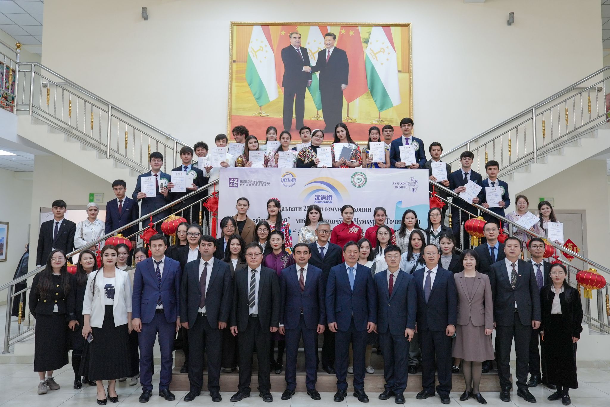 与塔吉克斯坦国际外国语大学合影