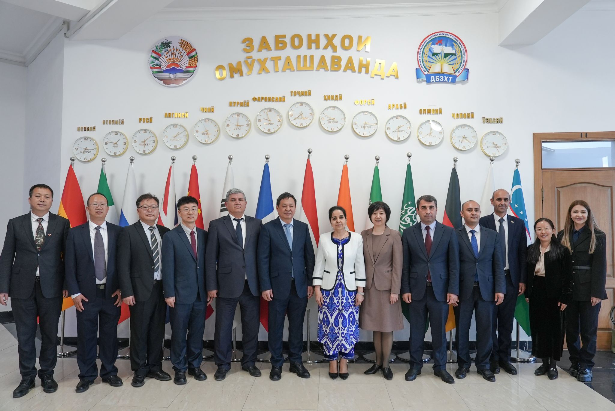 与塔吉克斯坦教育和科学部国家教育系统教师进修与培训学院合影