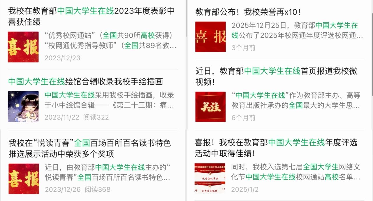 我校斩获教育部中国大学生在线多项荣誉的相关喜报截图合集