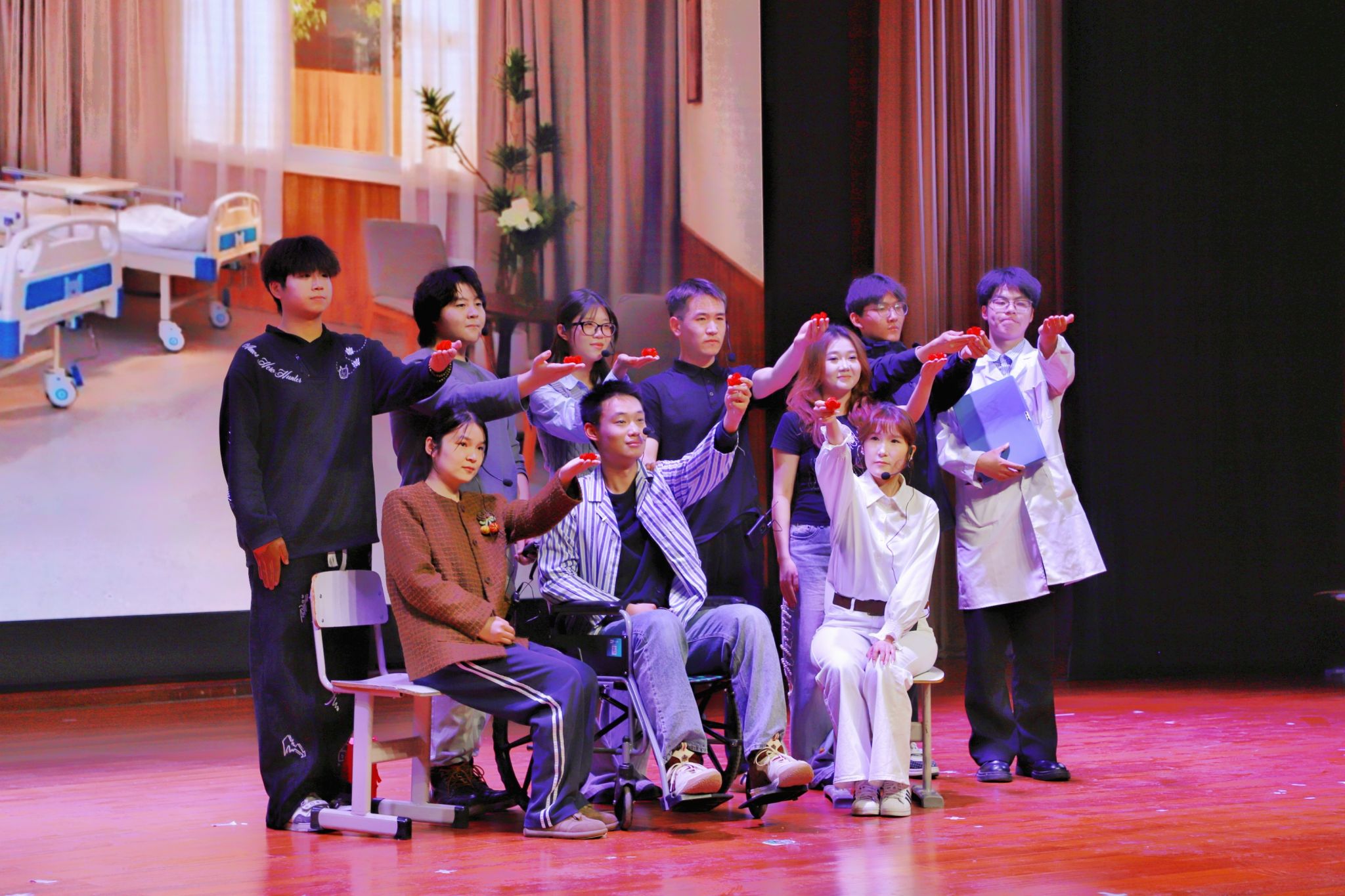经过激烈的角逐和评委的专业评审,最终商学院凭借作品《送你一朵小红花》摘得本次大赛桂冠,并同时获得“观众最期待剧目奖”,男主角的扮演者陈佳明同学荣获“最受观众欢迎奖”和“最佳男演员奖”。该剧根据我校学生真实抗癌故事改编,生动呈现了主人公在病痛中顽强抗争、师生之间守望相助的感人历程,真挚的情感和蓬勃的生命力深深打动了全场观众。