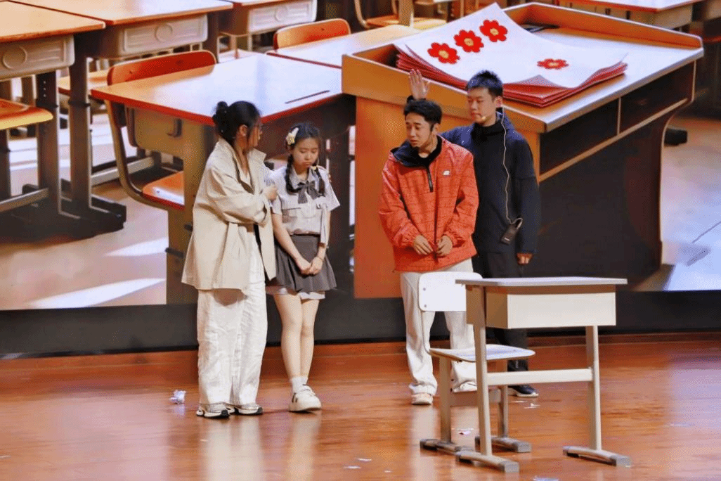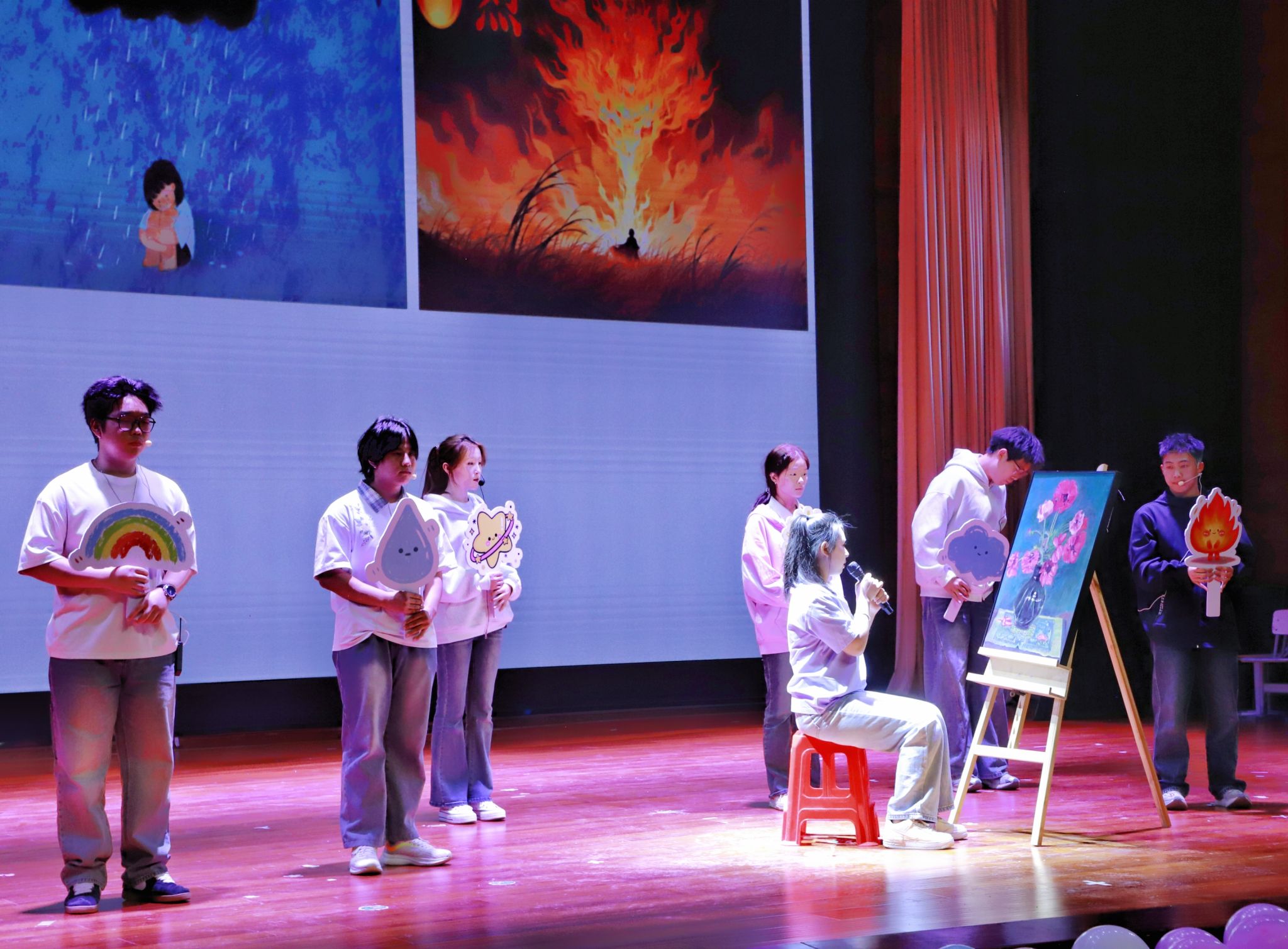 我校校园心理情景剧大赛已连续开展十六年。从最初的兴趣社团活动,到如今“班班参与、院院竞赛”的浓厚氛围,心理情景剧已成为覆盖全体新师学子、独具特色的实践育人经典品牌。心理情景剧的价值不仅闪耀于舞台之上,更沉淀于舞台之下。同学们共同创作、反复打磨剧本,在角色碰撞中学会倾听与表达,在协作配合中化解分歧与矛盾,在相互支持中缔结了深厚的情谊。这一过程本身就是一堂生动的人际关系课,让参与者在共创中收获成长,在互动中温暖彼此。观众在观剧中受教育,演员在表演中受教育,心理情景剧以润物无声的方式,将铸牢中华民族共同体意识贯穿心理健康教育始终。今后,学校将继续深化这一品牌,用小舞台表达大道理,让每一次演绎成为一堂温暖的成长课。