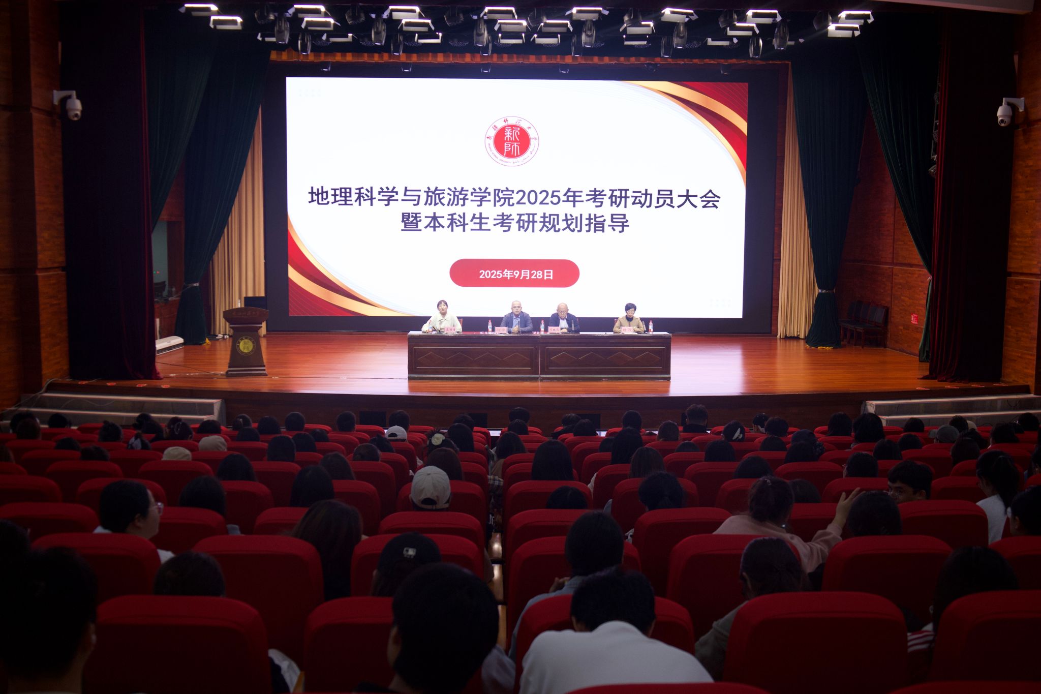 为进一步引导广大学生明确考研方向,精准把握考研动态,科学规划备考方案,9月28日,我校地理科学与旅游学院在昆仑讲堂顺利举办2025年考研动员大会暨本科生考研规划指导讲座。我校地理科学与旅游学院党委书记闫政远、副院长阿里木江·卡斯木、叶茂和各年级辅导员,以及2022级全体学生和2023、2024、2025级学生代表参加活动。会议由学院党委副书记、纪委书记高丽倩主持。