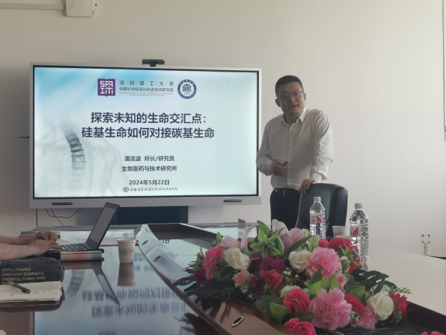 签约仪式后,潘浩波研究员受我校化学化工学院生物医用材料团队邀请,作题为“探索未知的生命交汇点:硅基生命如何对接碳基生命”的学术讲座。讲座从科技创新“四个面向”的国家战略需要出发,围绕“探索未知的生命交汇点:硅基生命如何对接碳基生命”这个主题,从原始生命的起源引入,介绍了临床硅基骨质材料应用的现状及存在的问题,并阐述作为材料医学科学家肩负的使命,如何研究出让病人获得最好感觉的骨质替代材料。