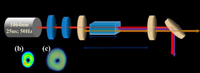 基于光学性能优良的KTiOAsO4(KTA)晶体,结合闲频光单谐振光参量振荡器的独特优势,搭建稳定紧凑的闲频光单谐振光参量振荡器;采用波长为1064nm的一阶涡旋光泵浦KTA光学涡旋参量振荡器,通过合理扩展腔长,控制泵浦光、信号光和闲频光之间的空间耦合因子,导致腔内一阶涡旋光与高斯光相干叠加,进而产生轨道角动量在0-1之间连续可调谐的非整数涡旋光的产生,为非整数涡旋光的产生提供了一种简单有效的方式。