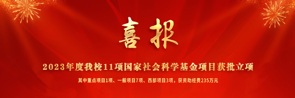 经全国哲学社会科学工作办公室批准,2023年度我校共有11项国家社会科学基金项目喜获立项,其中重点项目1项、一般项目7项、西部项目3项,获资助经费235万元。立项项目涉及学科主要有:民族学7项、马列·科社2项、中国文学和体育学各1项。