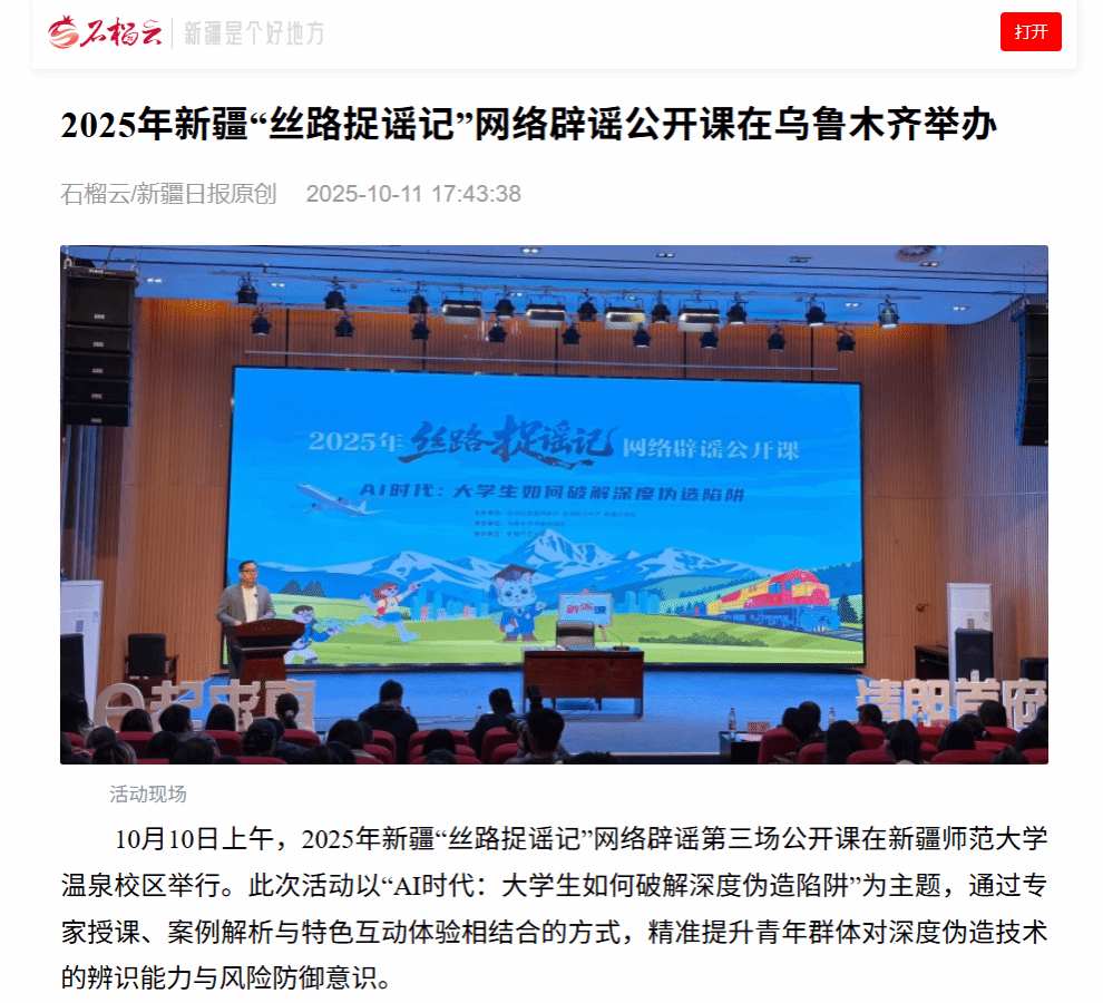 石榴云/新疆日报 | 2025年新疆“丝路捉谣记”网络辟谣公开课在乌鲁木齐举办