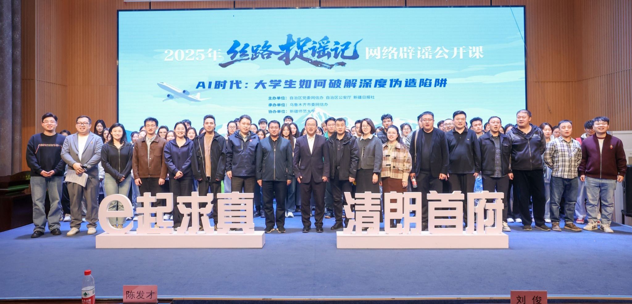 10月10日上午,2025年新疆“丝路捉谣记”网络辟谣第三场公开课在我校温泉校区学术交流中心202报告厅成功举行。我校学生代表近120人参加活动。活动现场本次活动以“AI时代:大学生如何破解深度伪造陷阱”为主题,由自治区党委网信办、自治区公安厅、新疆日报社共同主办,乌鲁木齐市委网信办具体承办,我校协办。活动通过权威致辞、专家授课、互动问答、特色展演与集体承诺相结合的形式,精准赋能我校师生及参会群体提升AI深度伪造风险辨识能力,...