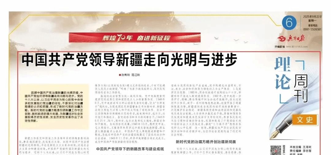 《兵团日报》 | 孙秀玲 范江玲:中国共产党领导新疆走向光明与进步