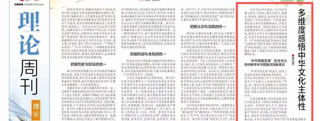 《兵团日报》 | 张文龙:多维度感悟中华文化主体性