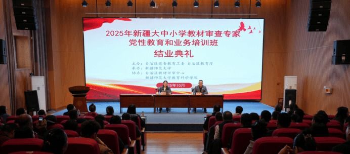 为贯彻落实全国教育大会和自治区教育大会精神,10月21日至24日,2025年新疆大中小学教材负责人业务培训会在我校温泉校区圆满举办。自治区教育厅党组成员、副厅长李建荣出席结业典礼,校党委常委、副校长陈彤主持结业典礼。 结业典礼现场 自治区教育厅党组成员、副厅长李建荣讲话 校党委常委、副校长陈彤主持结业典礼本次培训活动为期4天,由自治区党委教育工委、自治区教育厅主办,新疆师范大学承办。培训围绕“加强党的建设、提升政治能力、...