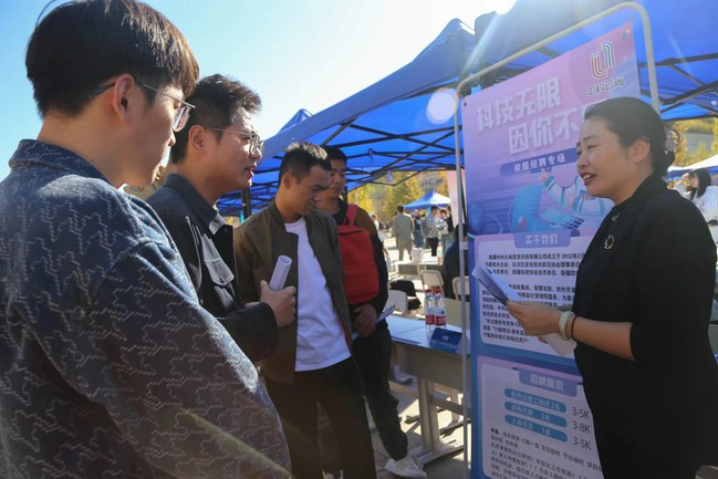 10月9日下午,我校在温泉校区图书馆前广场举办“‘就’在金秋 ‘职’等你来”2025届毕业生秋季大型招聘会。招聘会由自治区公共就业服务中心主办,新疆师范大学、水磨沟区人力资源和社会保障局承办。26家中小学校、中职学校、教育培训机构、人才集团公司,2家事业单位,15家央企、国企和69家民营企业共112家用人单位走进校园招聘人才,提供就业岗位共计3394个,吸引了我校3000余名学生入场求职。