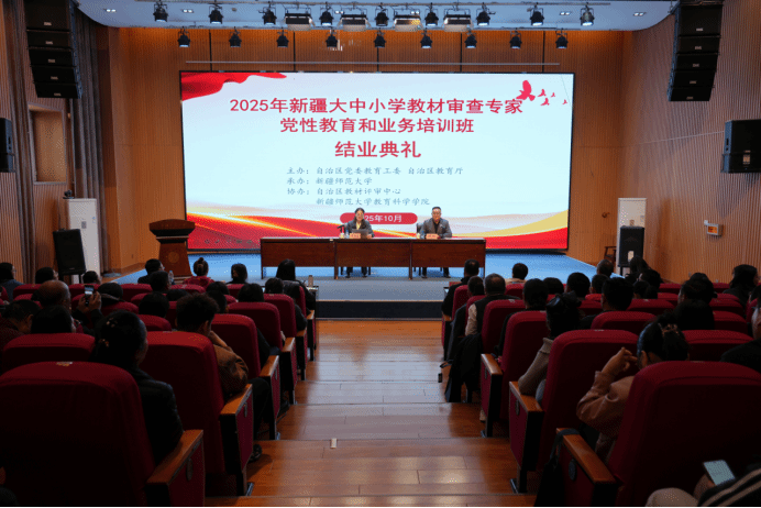 为贯彻落实全国教育大会和自治区教育大会精神,10月21日至24日,2025年新疆大中小学教材负责人业务培训会在我校温泉校区圆满举办。自治区教育厅党组成员、副厅长李建荣出席结业典礼,校党委常委、副校长陈彤主持结业典礼。