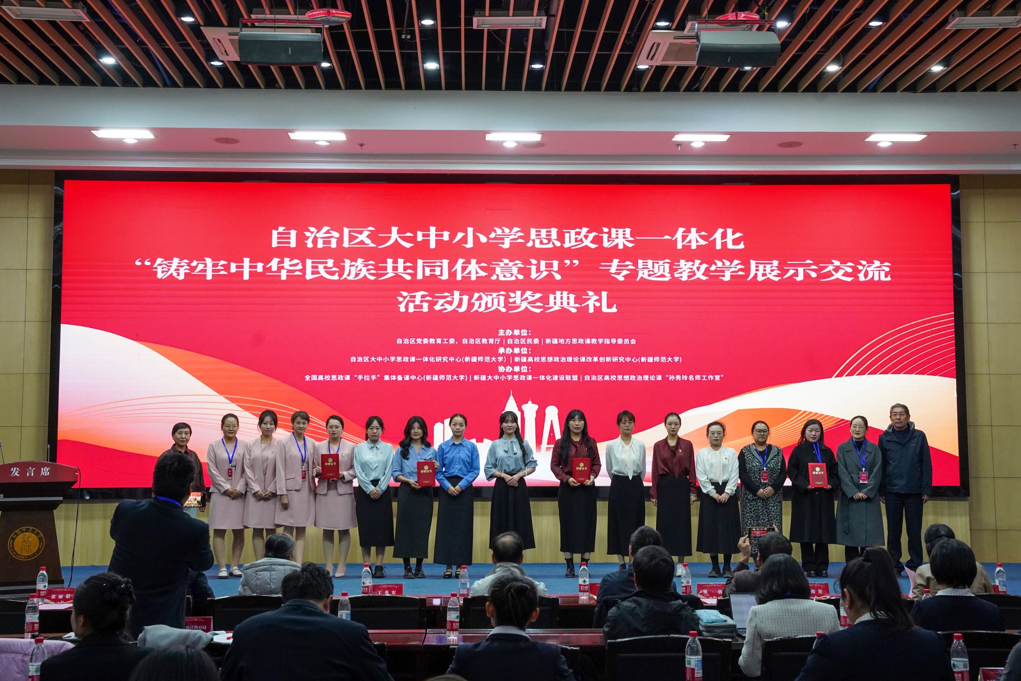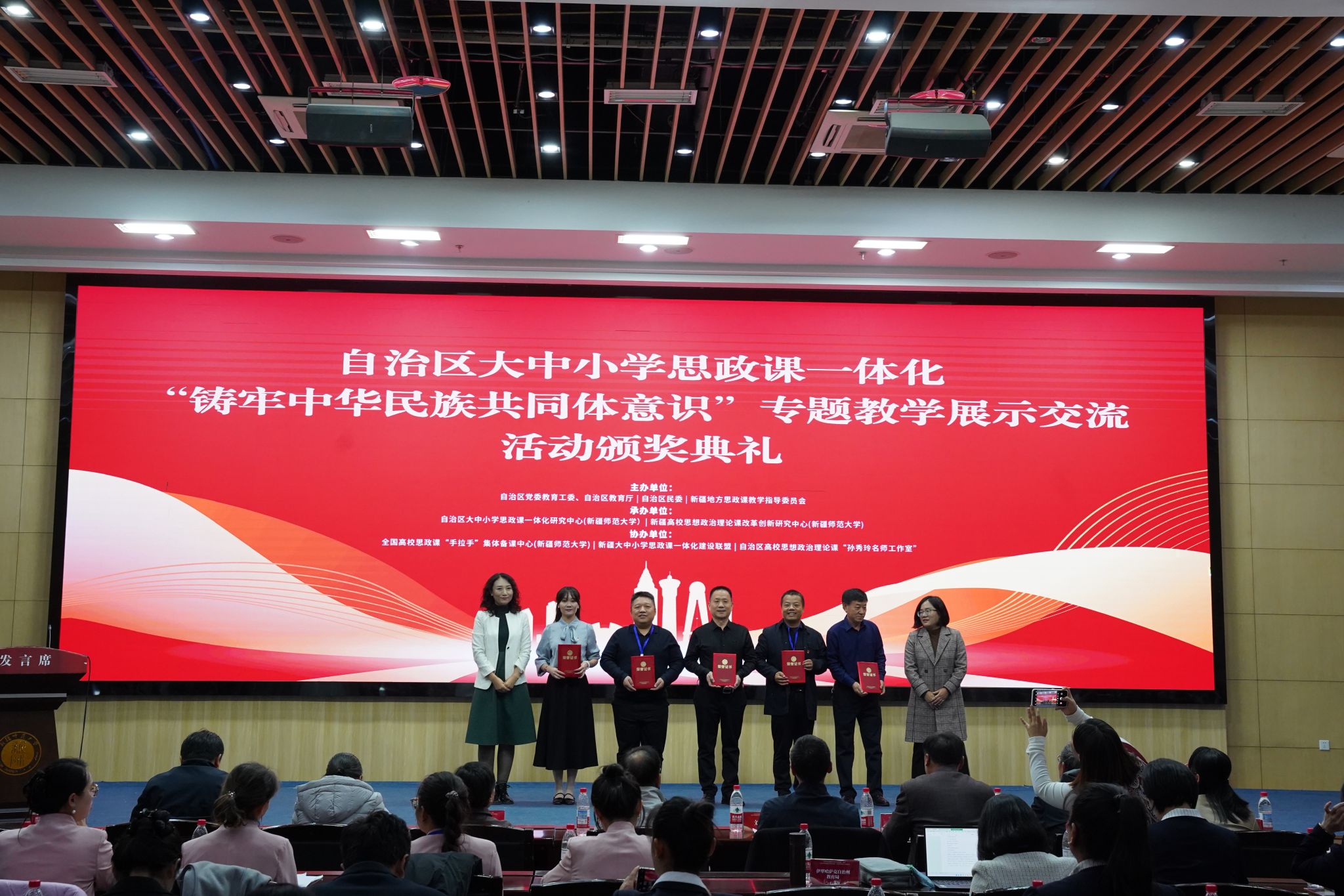 经过激烈角逐和专家评审,由我校马克思主义学院教师杜芳、乌鲁木齐市第四中学教师鲜凤骄、乌鲁木齐第三中学教师杨茹茹、乌鲁木齐市第八十小学教师汤慧珍组成的跨学段教学团队代表乌鲁木齐市荣获三等奖,同时乌鲁木齐市荣获优秀组织奖。这些获奖成果集中体现了我校在推进大中小学思政课一体化建设方面的创新实践,展现了各学段教师在铸牢中华民族共同体意识教育教学中的积极探索与成功经验。