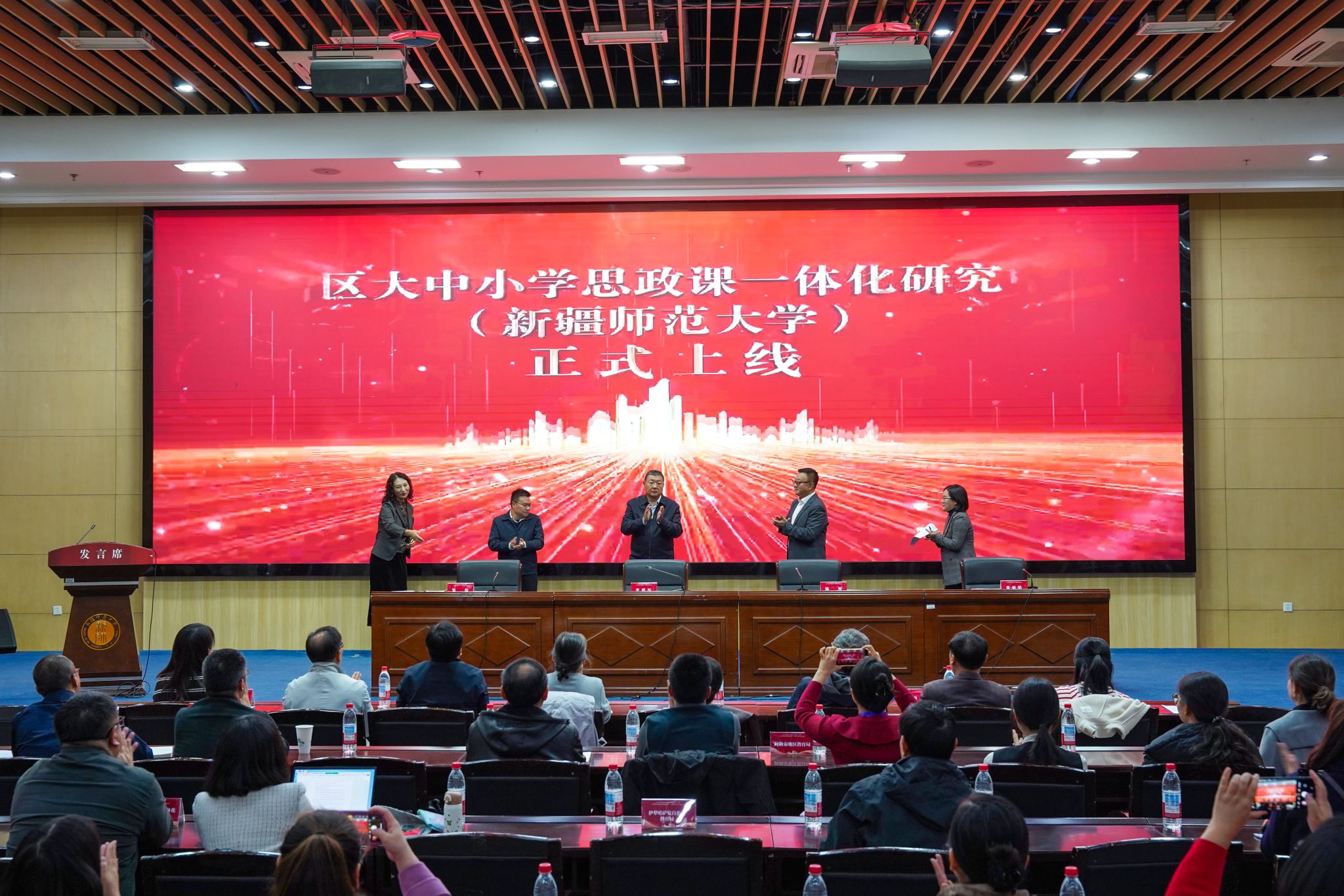 10月16日—17日,由自治区党委教育工委、自治区教育厅、自治区民委、新疆地方思政课教学指导委员会主办,自治区大中小学思政课一体化研究中心(新疆师范大学)、新疆高校思想政治理论课改革创新研究中心(新疆师范大学)承办的“自治区大中小学思政课一体化‘铸牢中华民族共同体意识’专题教学展示交流活动”在我校昆仑校区成功举办。自治区党委教育工委、自治区教育厅、自治区民委和我校相关负责同志出席活动,活动由我校马克思主义学院党委副书记、院长张丽娟教授主持。