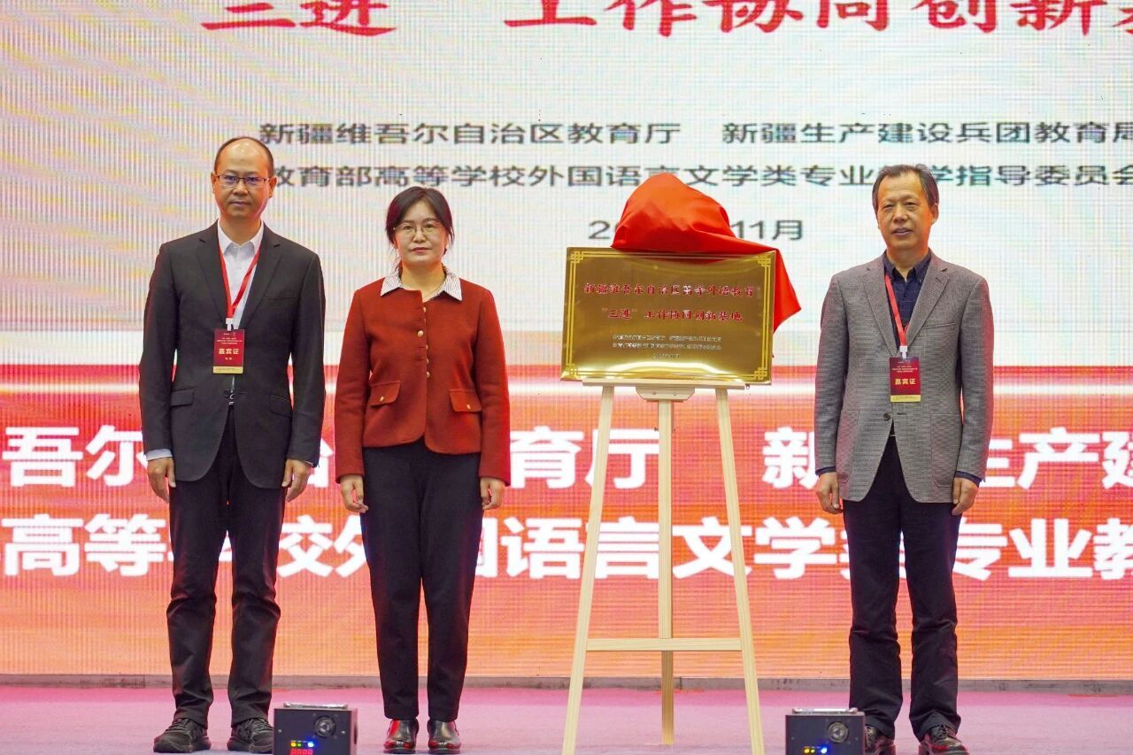 校党委常委、副校长,新疆天山职业技术大学党委书记关明代表学校参加“三进”工作协同创新基地授牌仪式