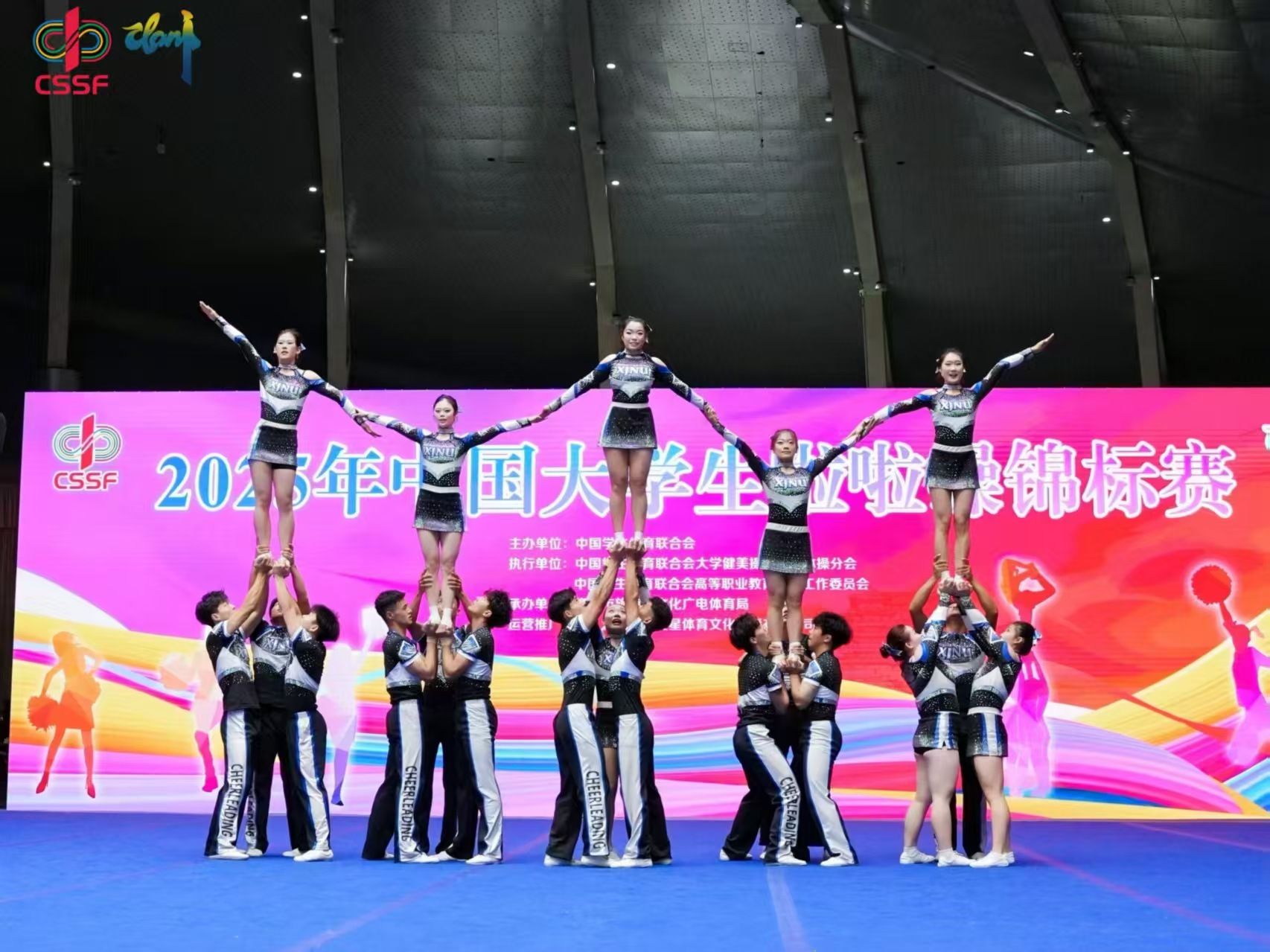 近日,由中国学生体育联合会主办的2025年中国大学生啦啦操锦标赛在海南儋州落幕,由我校体育学院师生组成的新疆师范大学健美操啦啦操代表队,凭借精湛技艺与默契协作脱颖而出斩获佳绩。