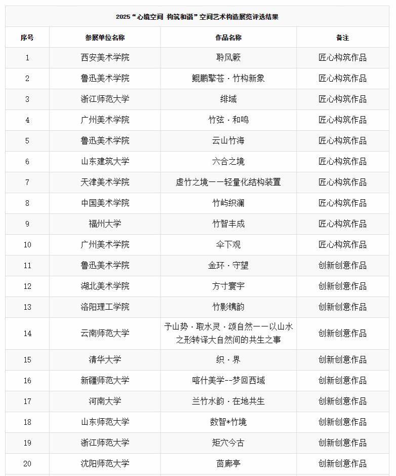 近日,由中国美术家协会环境设计艺术委员会、浙江省美术家协会、浙江师范大学、鲁迅美术学院联合主办,浙江师范大学设计与创意学院承办的2025“心境空间 构筑和谐”空间艺术构造展,在金华市建筑艺术公园开启现场搭建与评审工作。我校美术学院赵凯教授团队创作的《喀什美学——梦回西域》作品脱颖而出,斩获“创新创意作品”奖项,不仅为学校赢得荣誉,更成为本次展览中新疆地区的唯一获奖作品,彰显了新疆师范大学在全国艺术创作领域的独特价值与竞争力。