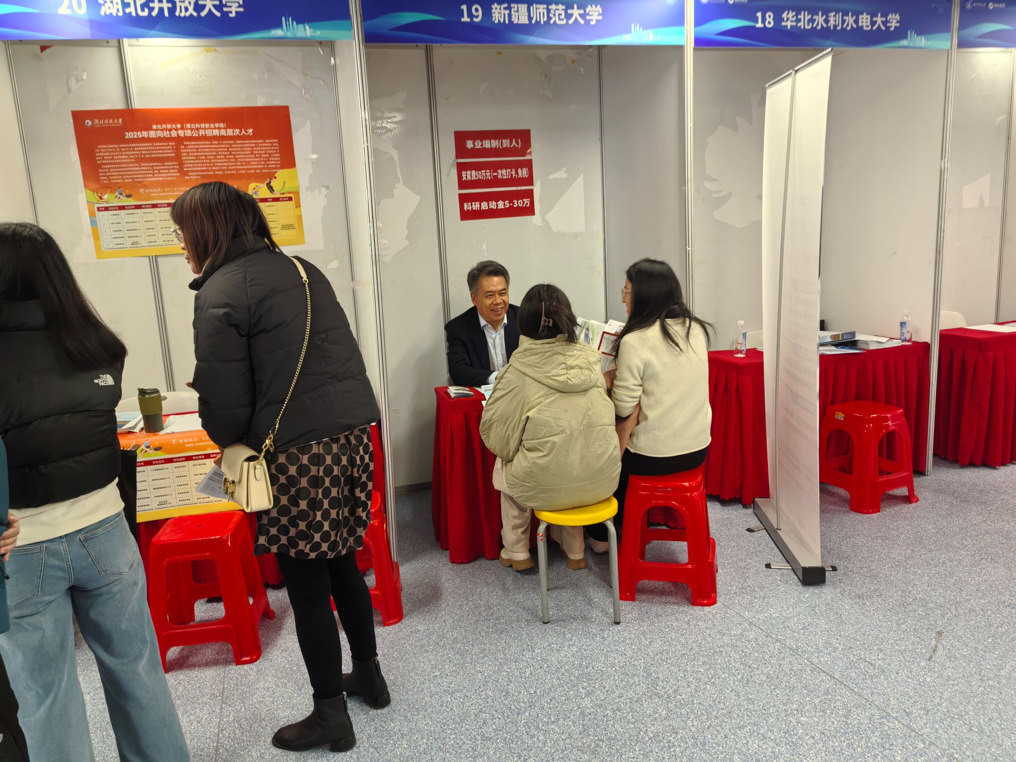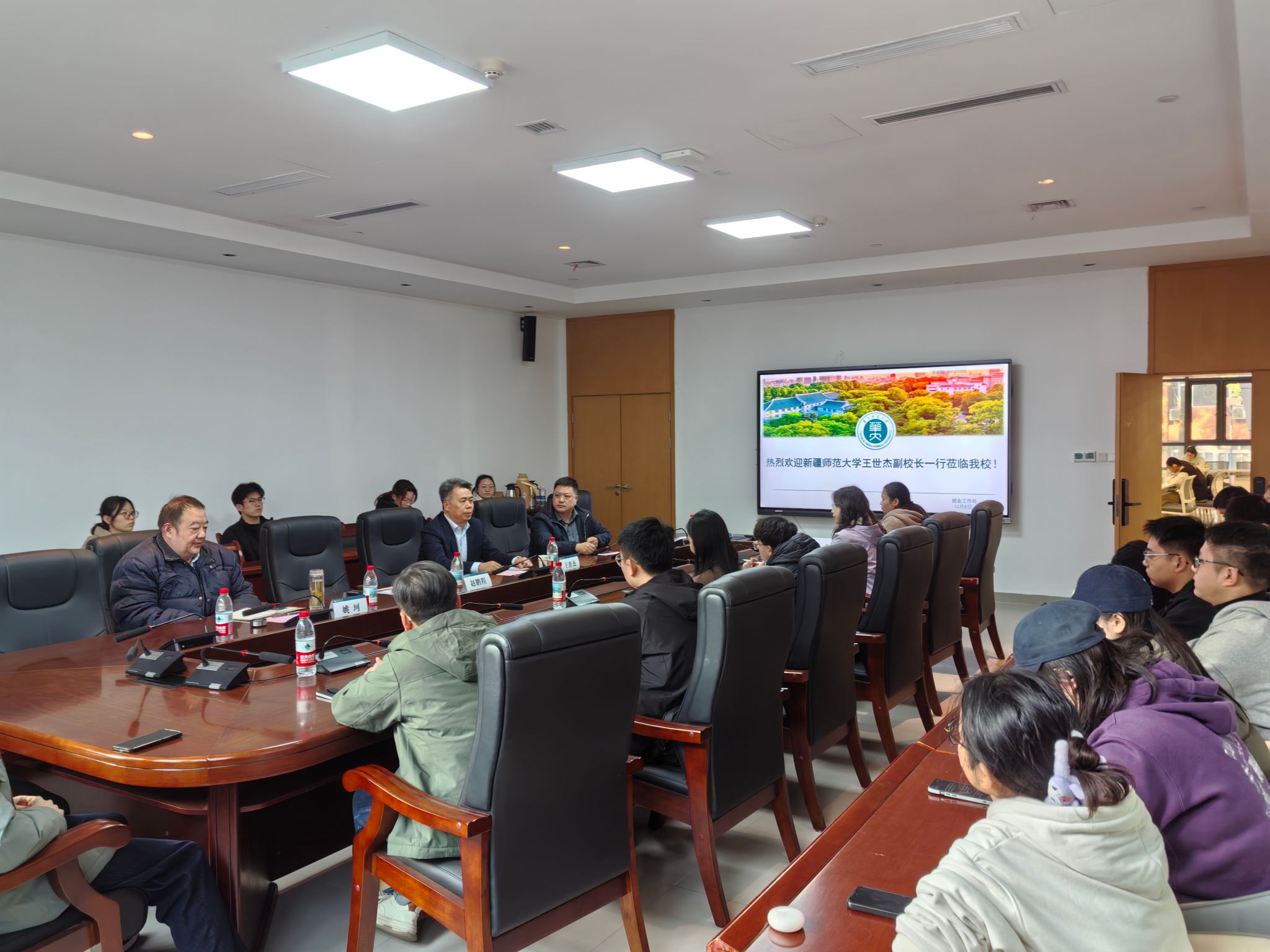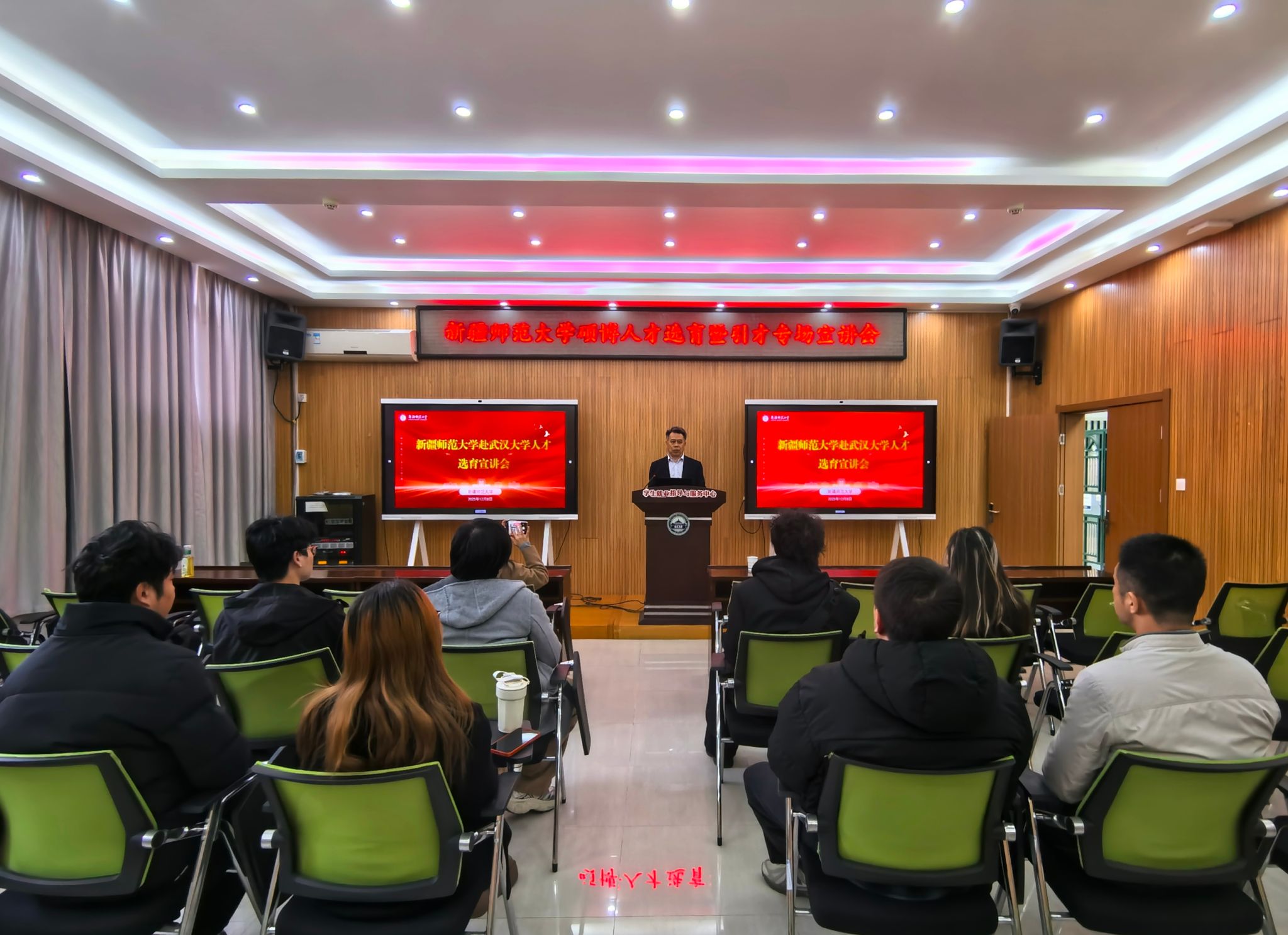12月6日上午,王世杰及人事处工作人员在华中科技大学参与校园博士专场招聘会,在现场与多位有意向的博士毕业生进行面对面交流,耐心解答疑问,精准推介我校最新人才政策及岗位需求。12月8日上午,王世杰与武汉大学党委副书记屈文谦及就业部门负责人进行座谈,双方就人才供需对接、政策宣传协作等交换意见。屈文谦表示,将积极支持并协助我校开展人才引进宣传工作。座谈会后,王世杰向武汉大学有志于参与“青苗选育”计划及来校工作的博士毕业生进行了政策宣讲。他指出,新疆是“一带一路”核心区和我国向西开放的桥头堡,乌鲁木齐作为首府,兼具战略区位、政策支持与生活便利。选择新疆,意味着立足国家大局,在边疆振兴中实现个人价值与事业成长。12月8日下午,王世杰及人事处工作人员前往华中师范大学,与华中师范大学党委副书记陈迪明及就业部门负责人进行座谈,进一步巩固校际人才合作桥梁。随后,面向该校学生举办了专场宣讲会,系统介绍了我校的人才引进政策、事业发展环境,吸引了众多学子关注。