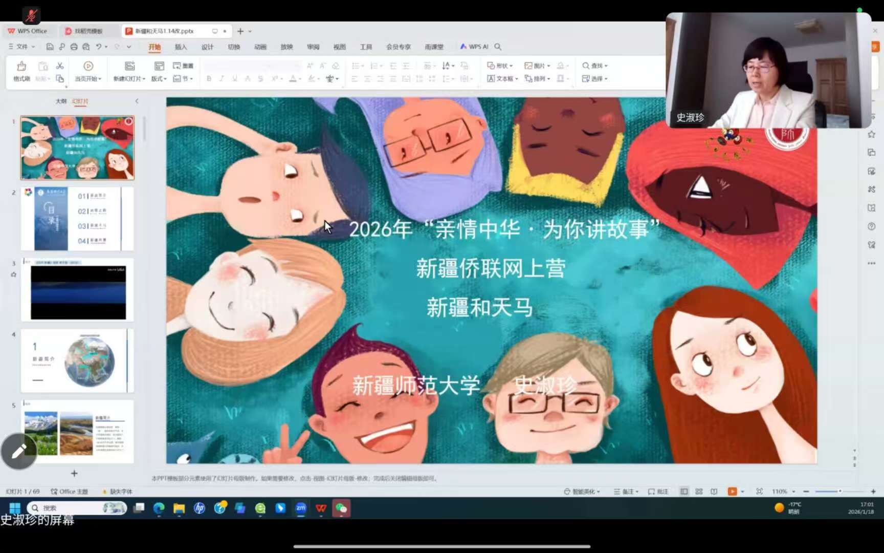 1月18日,由中国侨联主办,新疆侨联、新疆师范大学联合承办的2026“亲情中华·为你讲故事”第一期网上营正式开营。自治区侨联党组成员、副主席米海尔古丽·阿吉,我校党委副书记刘俊出席开营仪式。来自土耳其、阿联酋迪拜、德国、爱尔兰等12个国家的15所海外华文教育机构代表、负责人及营员线上参加。