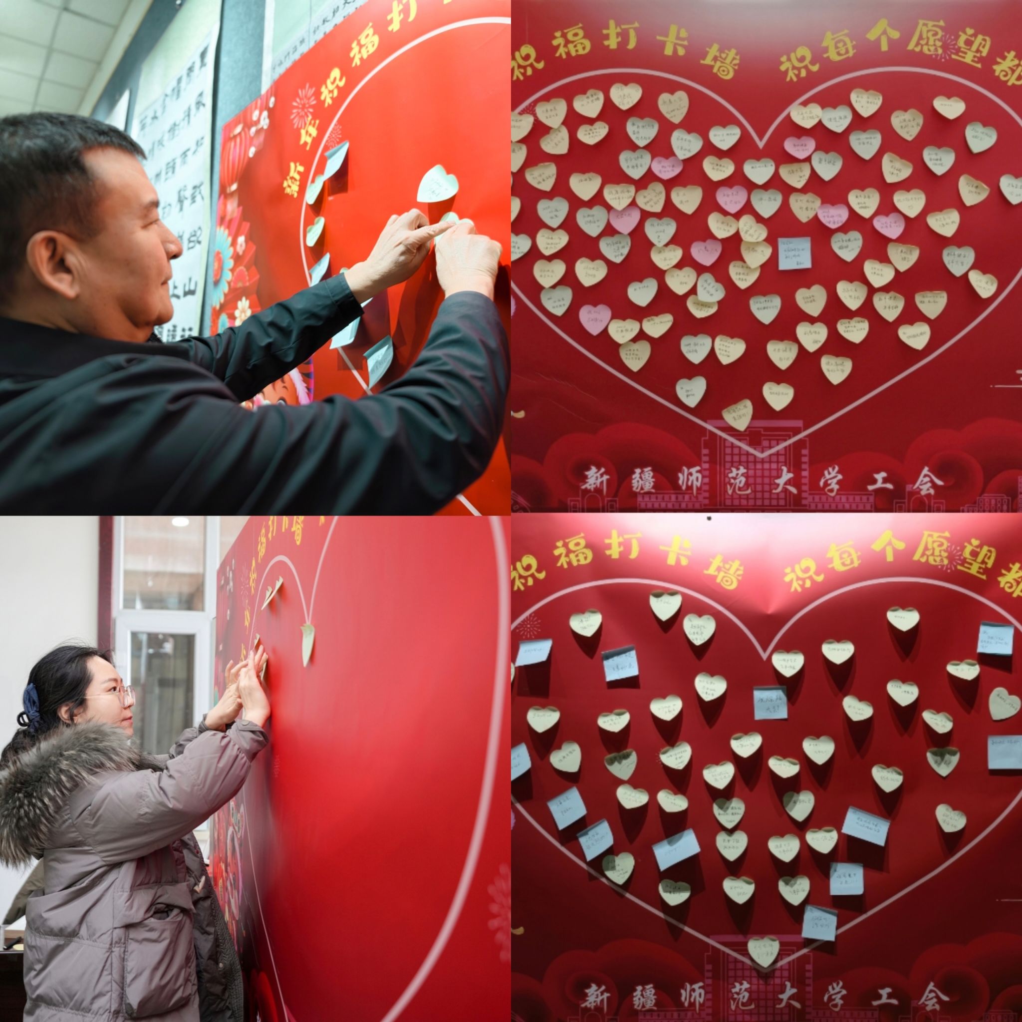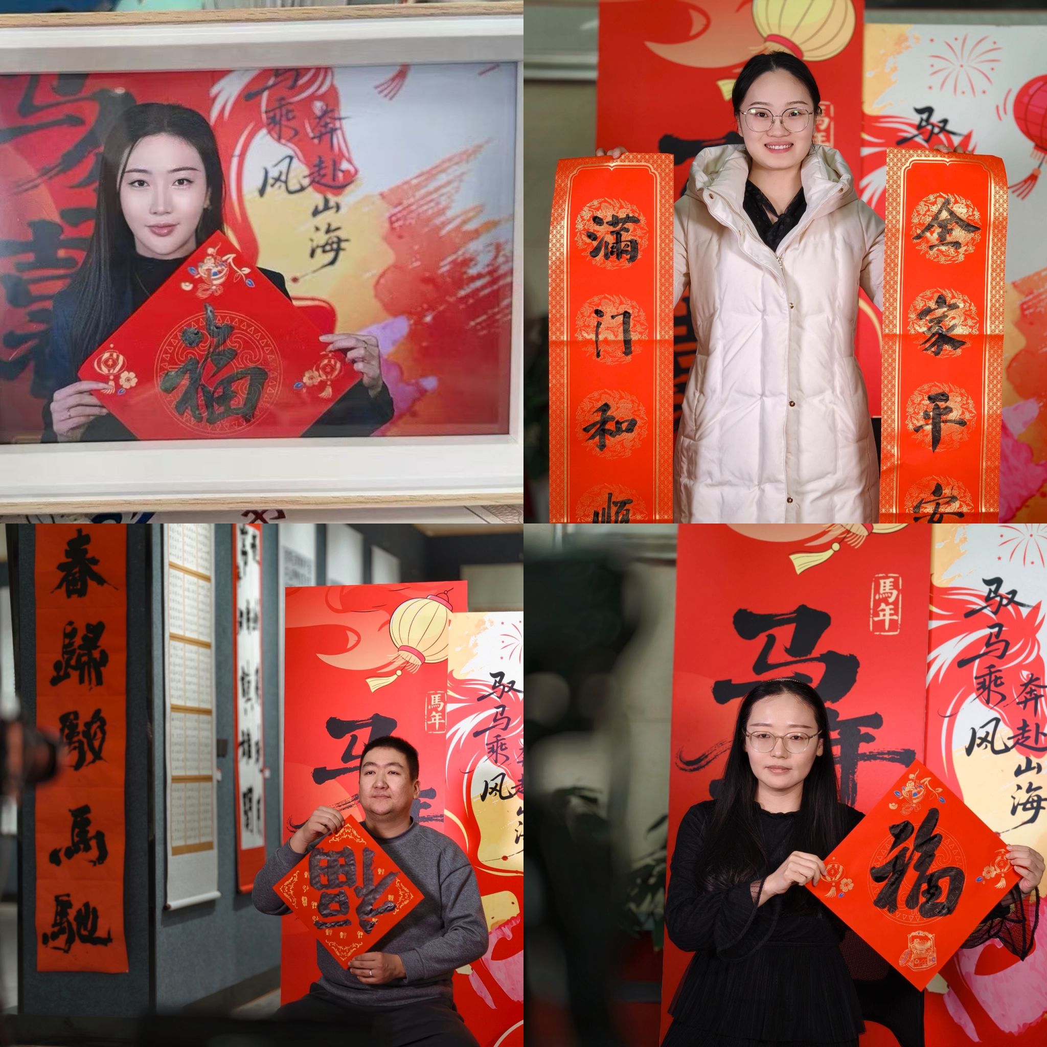 本次活动包含书写春联、表达祝福、定格温情三个环节。我校美术学院书法专业师生笔走龙蛇,创作出一幅幅笔力遒劲的春联和寓意吉祥的“福”字;我校教育科学学院教育技术专业师生则用镜头捕捉温馨瞬间,记录下老师们的笑脸与祝福;领上春联、带着照片,老师们满怀真情地写下对祖国和学校的诚挚祝愿及新年期许,字里行间尽显家国情怀,凝聚起全校携手共进、同心前行的强大力量。