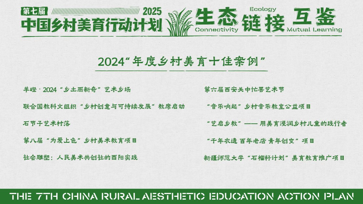 本次乡村美育案例评选活动由中国乡村美育行动计划组委会发起,自2021年起已连续开展四年,累计收集全国各类乡村美育案例超1500个。2024年度评选历经案例征集、初选、专家评审等多轮严格筛选,从全国463个申报案例中初选出92个典型项目(含74个实践项目、18个运营主体),再由全国范围内从事乡村建设的知名专家学者组成评审团,经过严谨论证、综合评议后最终确定十佳案例。
