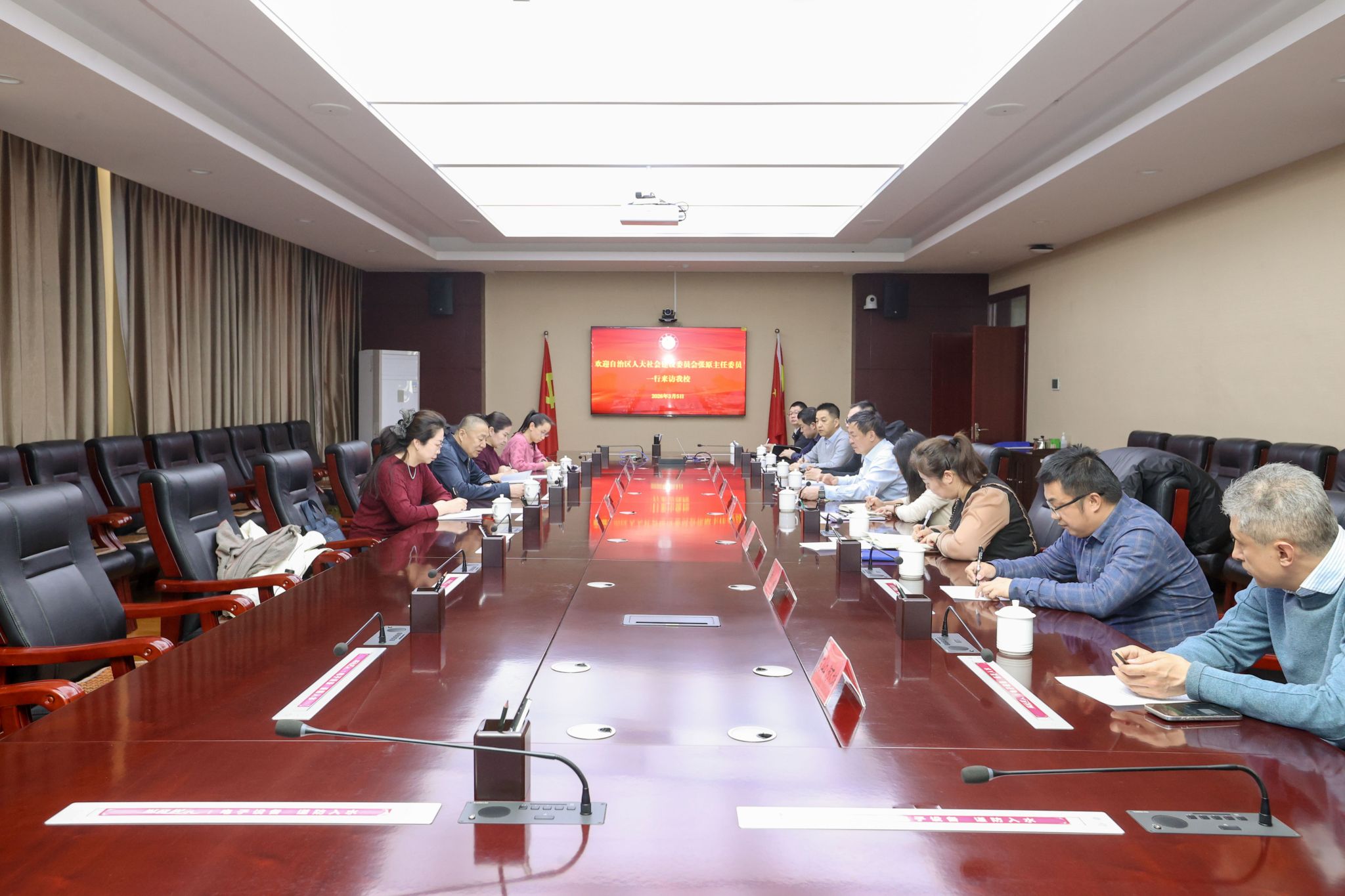 3月5日下午,自治区人大社会建设委员会主任委员张原一行赴我校开展调研座谈。