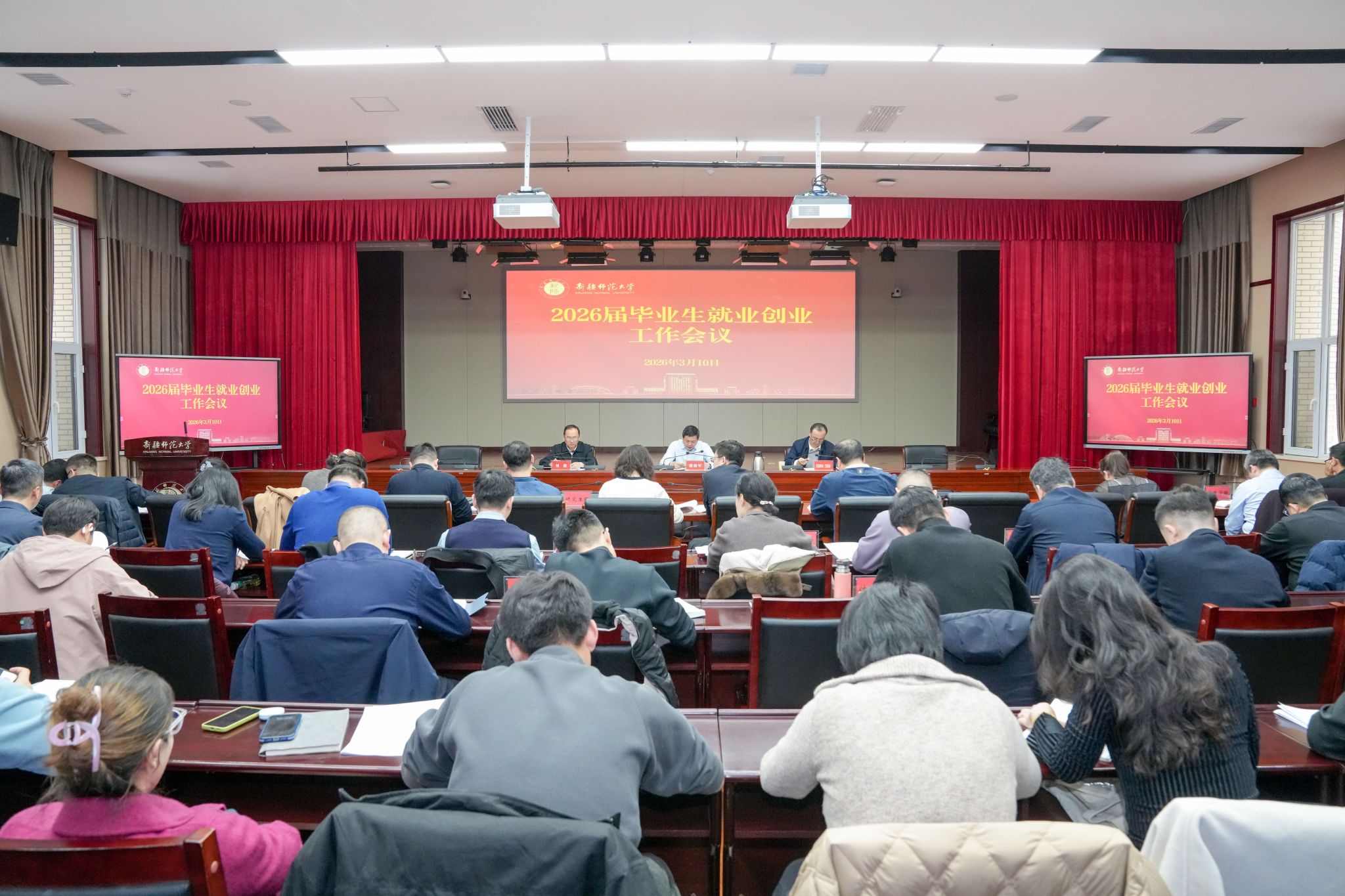 蒋海军强调,就业工作没有旁观者,人人都是参与者、人人都是责任人,实现2026届毕业生高质量充分就业,关键在落实,关键在担当,关键在实干,各学院、有关部门要进一步统一思想、提高认识,压实责任、真抓实干,以“时不我待、只争朝夕”的紧迫感,以“抓铁有痕、踏石留印”的硬作风,全力以赴做好2026届毕业生就业创业工作,让每一位新师学子都能在人生的新起点上,找到属于自己的舞台,为建设社会主义现代化新疆贡献青春力量。