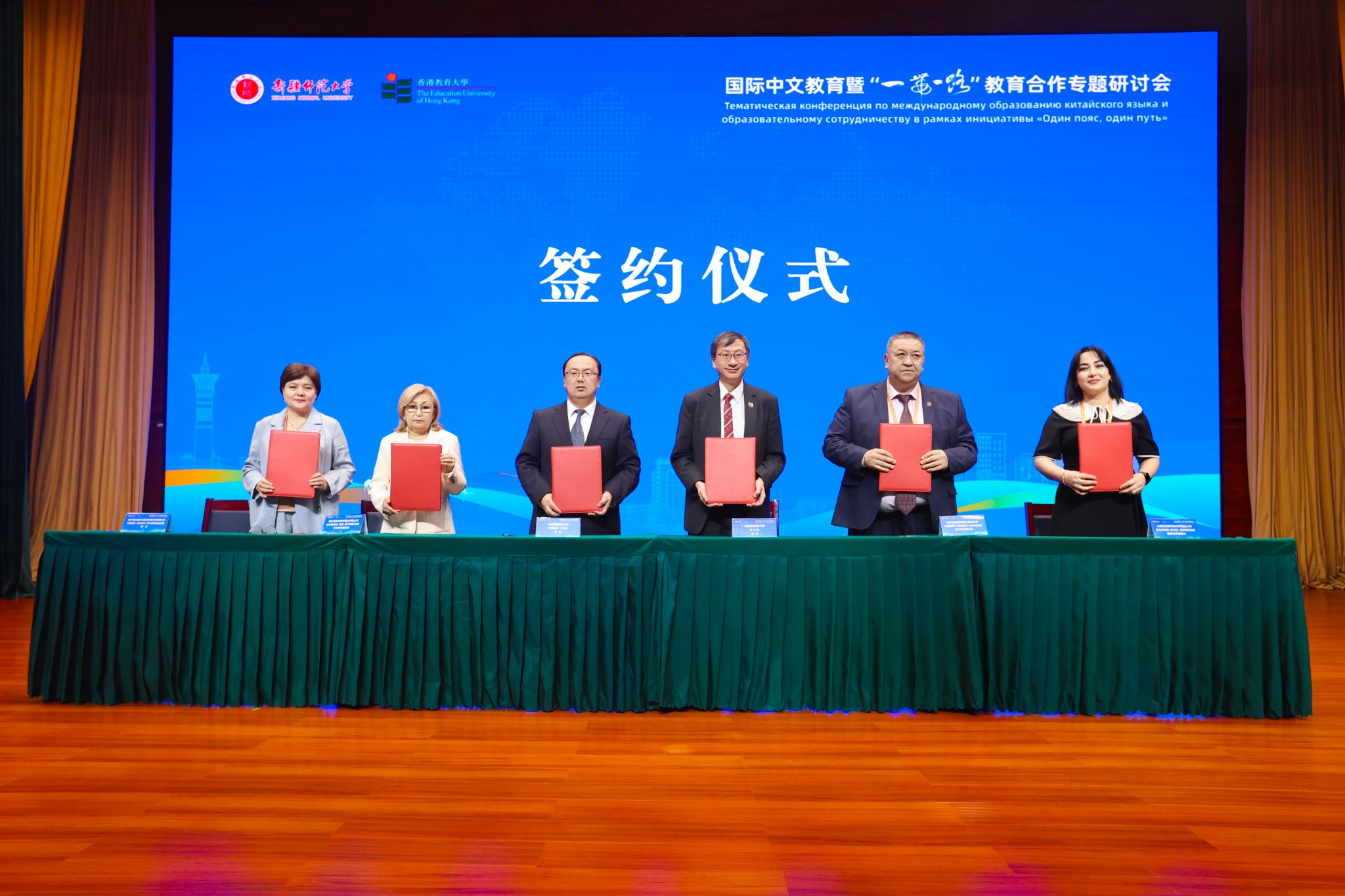我校与香港教育大学、哈萨克斯坦阿拜国立师范大学、吉尔吉斯斯坦国立民族大学、科尔基特阿塔克孜勒德大学、乌兹别克斯坦纳沃伊州立大学签署教育合作协议