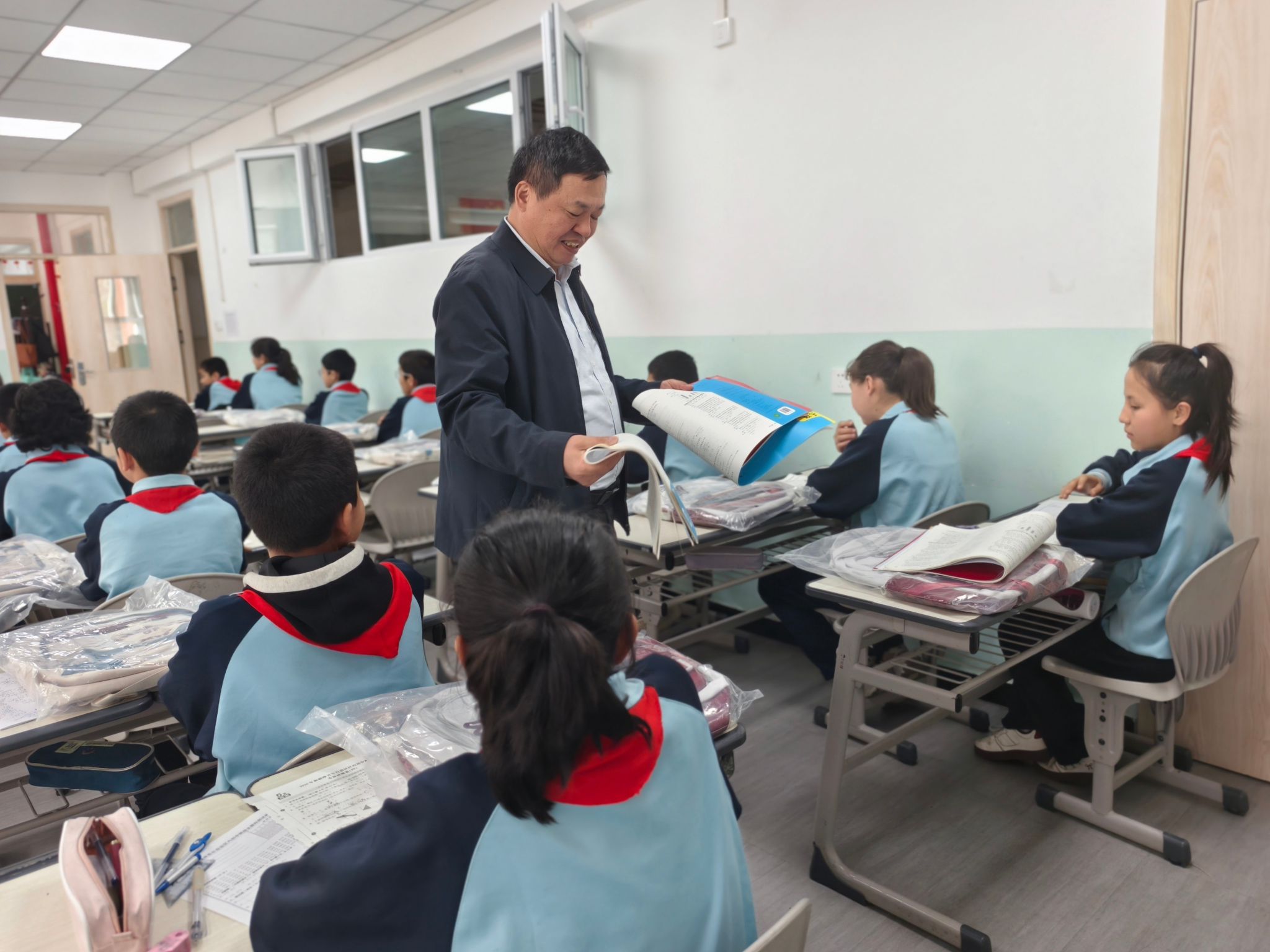 4月10日下午,校党委书记蒋海军看望慰问了参与此次研学活动的全体师生。蒋海军一行实地察看研学教学教室、校园食堂等重点场所,询问了解师生食宿安排、教学计划推进等情况,与学生面对面亲切交谈,倾听孩子们学习生活中的困惑与需求,并为全体研学学生赠送了学习资料和书包,将学校党委的关怀传递给研学师生。