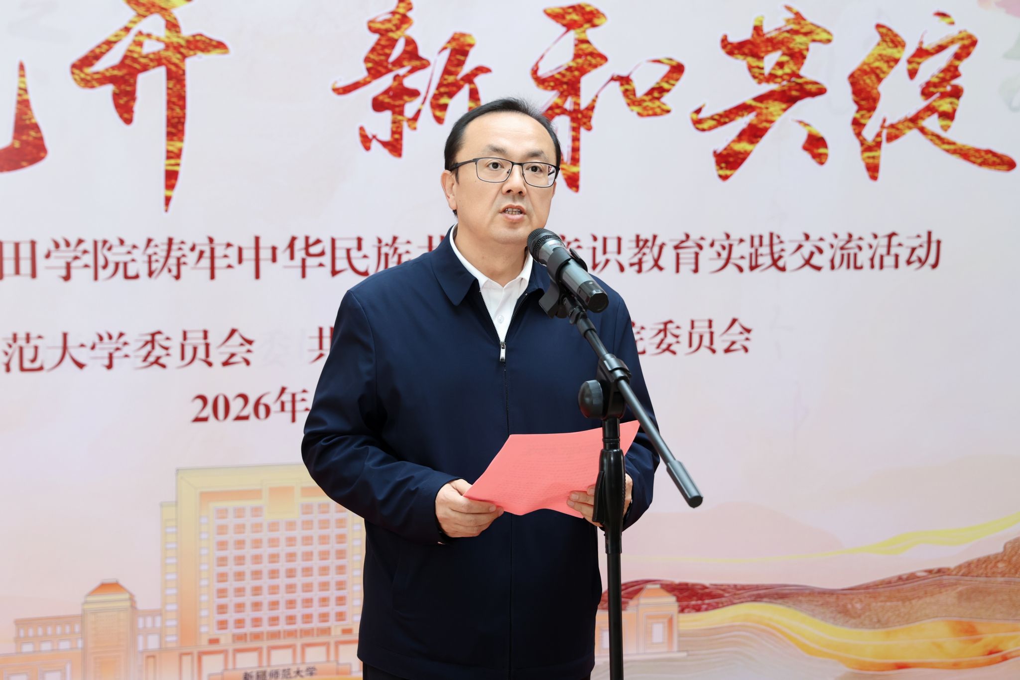 为深入推进铸牢中华民族共同体意识教育,全面深化高校美育育人实践,促进校际交流与协同合作,近日,由我校与新疆和田学院联合举办的铸牢中华民族共同体意识教育实践交流展正式开幕。校党委副书记、校长艾尼娃尔·艾克木,校党委副书记刘俊以及两校相关职能部门负责人参加开幕式。活动由刘俊主持。