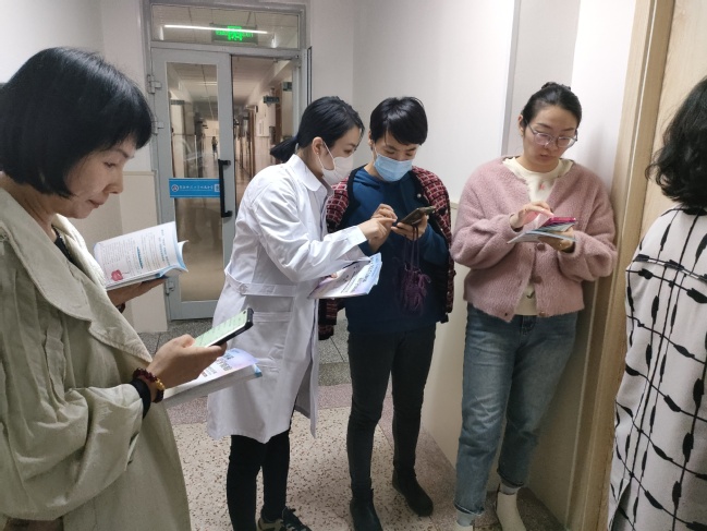 医务人员发放《肿瘤防治科普宣传册》