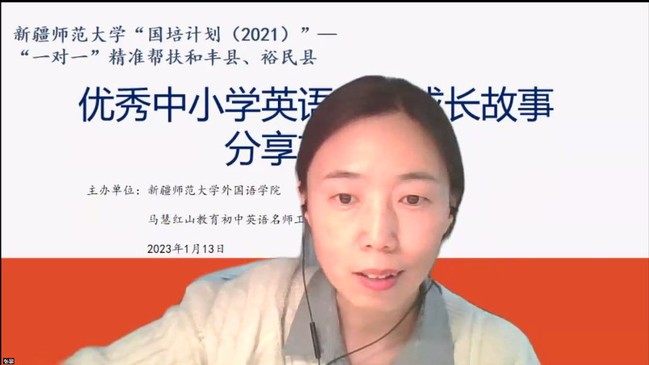 1月13日下午,我校“国培计划(2021)”——“一对一”精准帮扶新疆塔城和丰县、裕民县之优秀中小学英语教师成长故事分享交流会通过腾讯会议在线上举行。此次活动由我校外国语学院和马慧红山教育初中英语名师工作室共同举办。来自塔城和丰县、裕民县小学英语、初中英语工作坊骨干教师,马慧红山教育初中英语名师工作室成员以及我校外国语学院英语专业师范生参加活动。