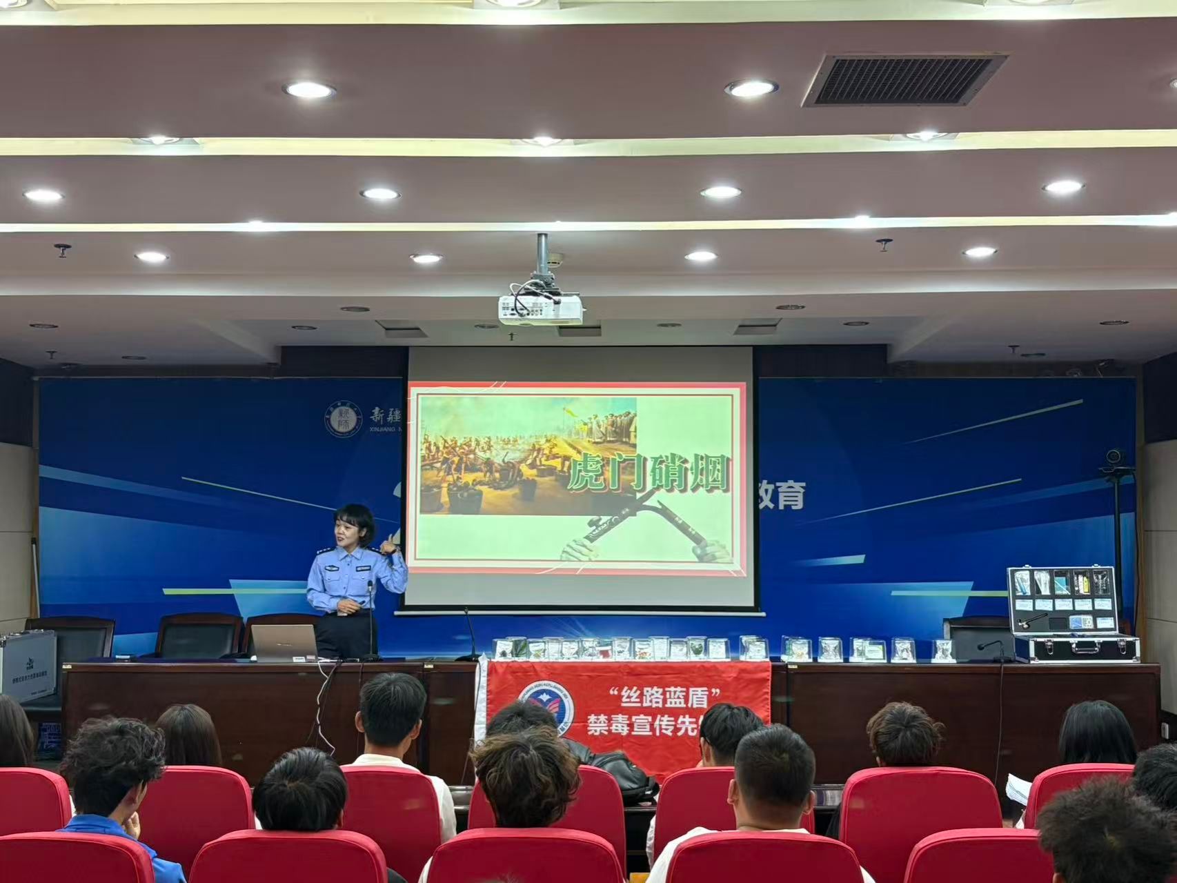 在座谈会上,吕军介绍了共建历程及体育学院概况。阿不都沙拉木·阿不都克尤木介绍共建成果及本单位概况。自治区第三强制隔离戒毒所工作人员还现场为学生开展禁毒宣传讲座,通过摆放毒品模型、现场讲解等形式,向学生普及禁毒知识,增强学生防毒、拒毒的意识。