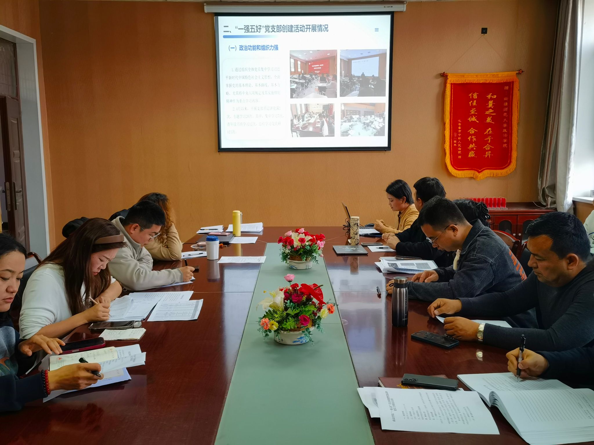 会议前,学院党委副书记、纪委书记李康领学《新时代党的治疆方略的成功实践》白皮书等相关材料。为助力各党支部提升创建水平,我校政法学院孙剑教授结合全国样板党支部创建经验作专题分享,从实践层面为创建工作提供借鉴。他提出一是要坚持党建引领业务发展,将党建工作与教学科研、人才培养等核心业务深度融合,充分发挥支部党员先锋模范作用,以党员“带头干”带动支部“整体优”;二是要严格落实制度要求,规范召开“三会一课”,常态化开展政治学习,以制度刚性确保党建工作有序推进;三是丰富组织生活形式,紧跟自治区政策导向,创新活动载体,切实增强党员参与积极性。