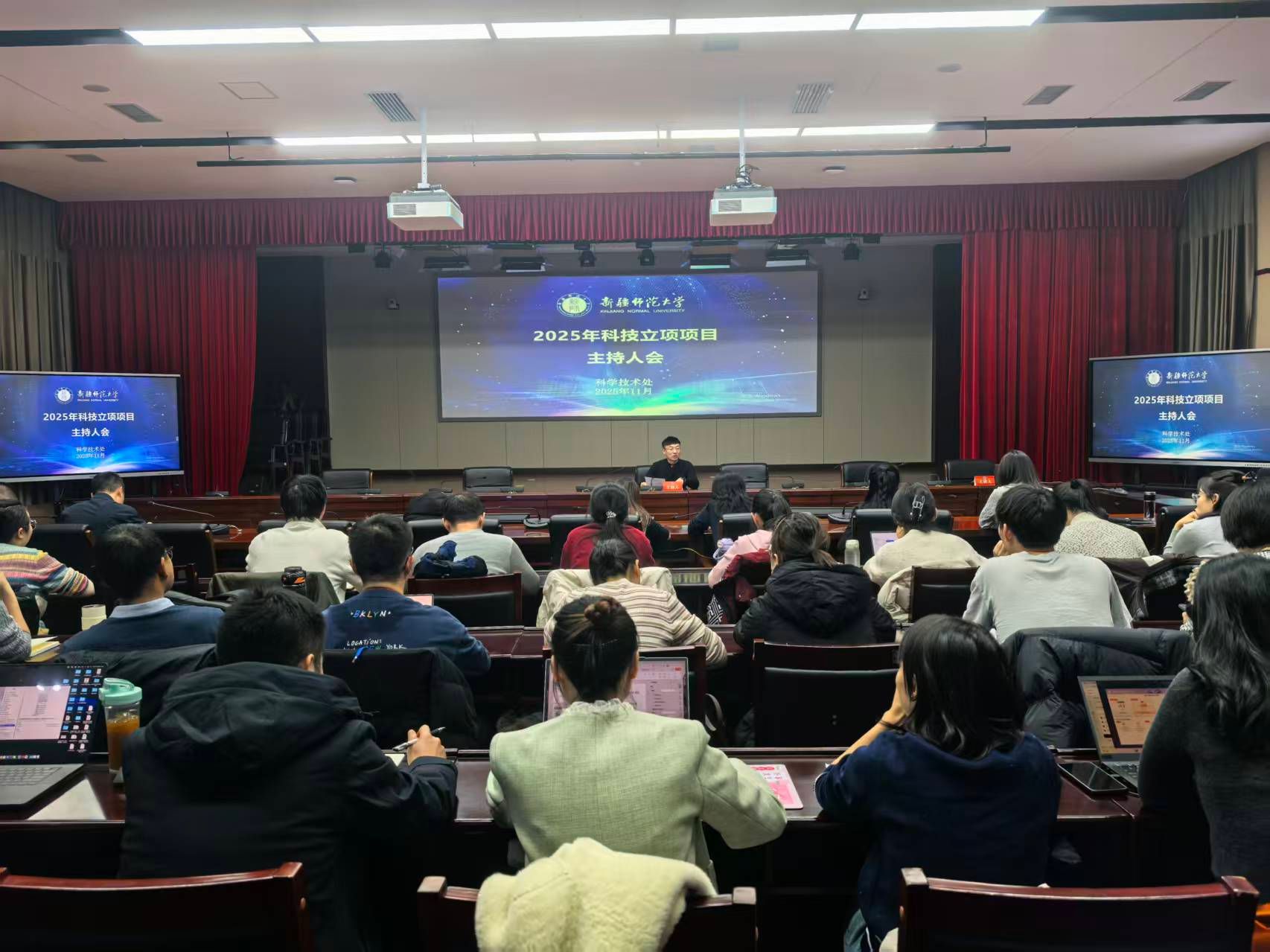 为保障我校各级各类科技计划项目规范有序实施,11月14日下午,学校科学技术处联合计财处、资产管理处在温泉校区行政楼220会议室召开2025年度科技立项项目主持人会议,2025年科技立项项目主持人和科研秘书等80余人参加会议,会议由学校科学技术处王勇辉主持。