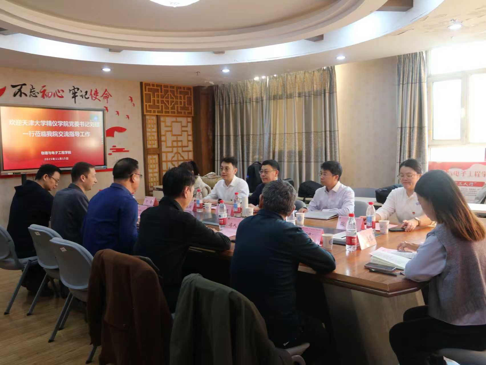 为持续深化基层党建质量提升工程,加强党建与业务工作统筹融合、双向促进,11月15日,天津大学精密仪器与光电子工程学院党委书记刘琨一行来到我校物理与电子工程学院开展党建共建交流。我校物理与电子工程学院党委书记许尔湘、副院长帕尔哈提江·吐尔孙、冯人海等参加交流座谈。